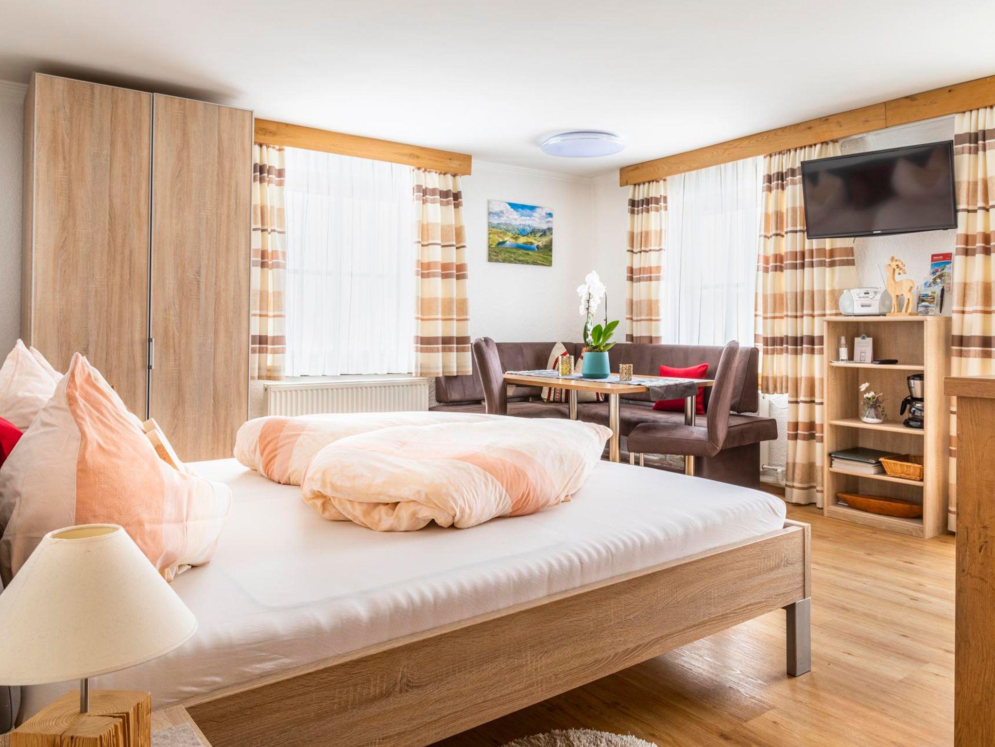 Das Apartment hat eine Größe von 32 m² und bietet Platz für 2 Personen. Der große Raum beinhaltet sowohl Schlaf- als auch Wohnfläche und einer komplett eingerichteten Küchenzeile, sowie einem extra Raum mit Dusche und WC und Balkon, Kabel-TV. Zu dieser Wohnung kann ein Kinderzimmer für 1 - 2 Kinder dazugemietet werden, das Kinderzimmer befindet sich direkt an der Wohnung.
