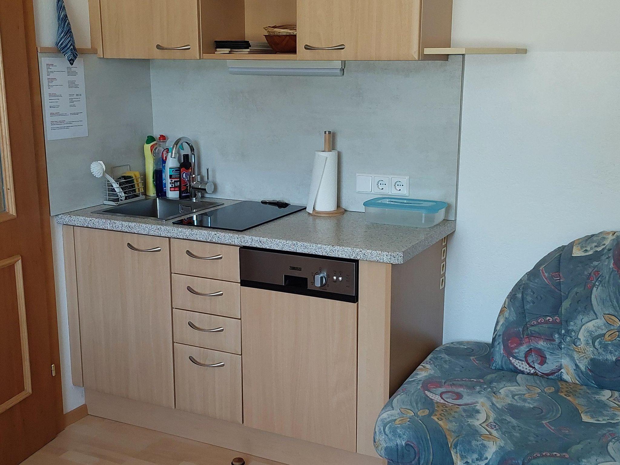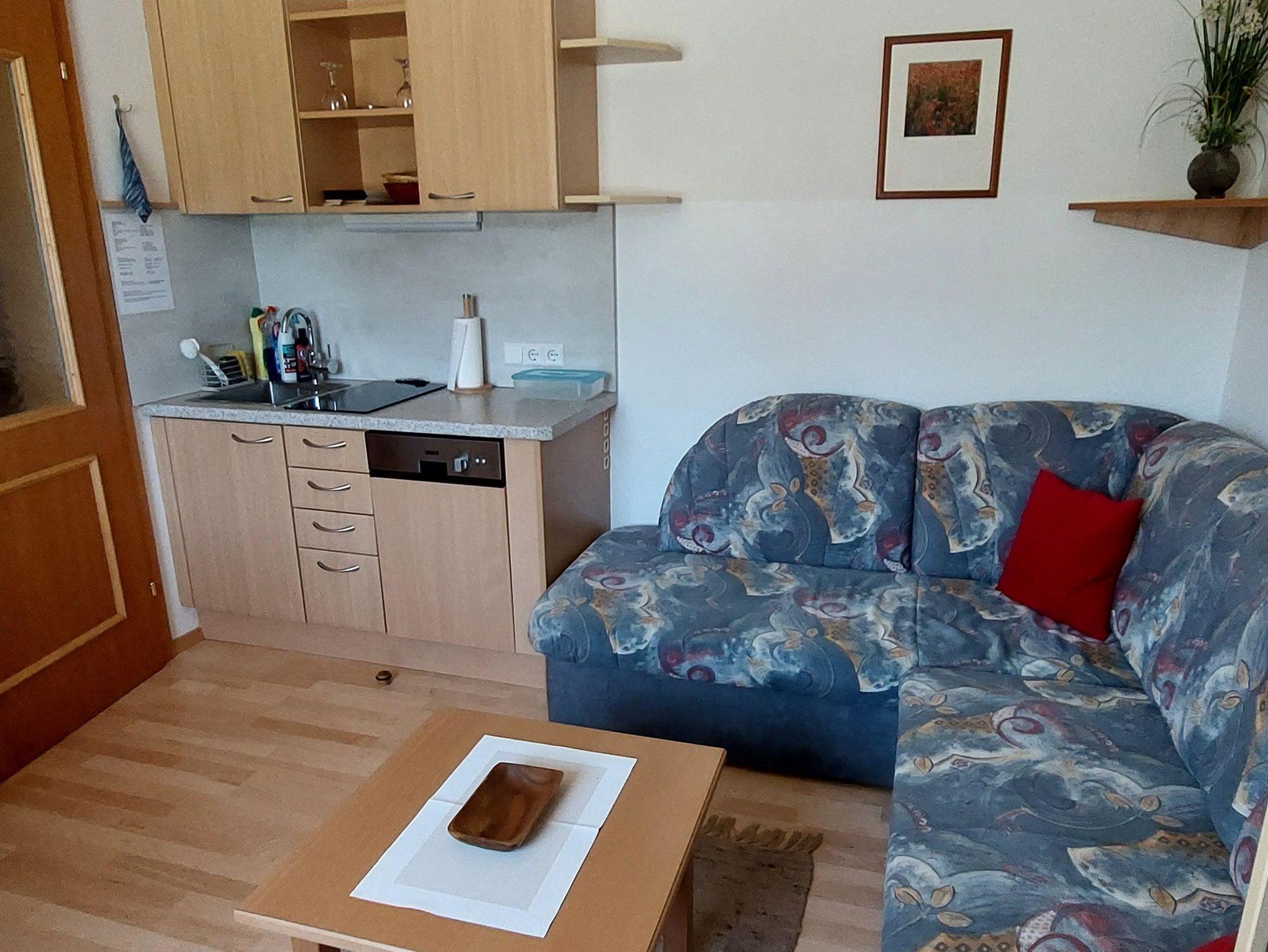 Kleine renovierte Ferienwohnung mit Parkettboden (Vorzimmer, Dusche/WC, 1 Schlafzimmer, kleine Wohnküche mit Kochnische, Kombi-Backofen/Mikrowelle, Geschirrspüler, Kaffeemaschine, Wasserkocher, Toaster, SAT-...) mit heller Möblierung, Wlan, Radio, Fön, SAT-TV !