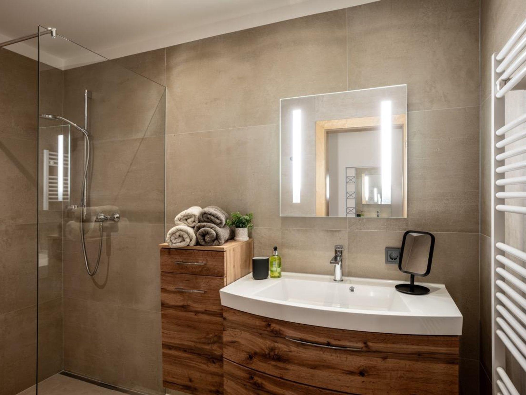 Badezimmer: Das Badezimmer ist mit einer barrierefreien Dusche ausgestattet, die Ihnen höchsten Komfort bietet. Das WC ist separat untergebracht, um Ihnen maximale Privatsphäre zu gewährleisten.