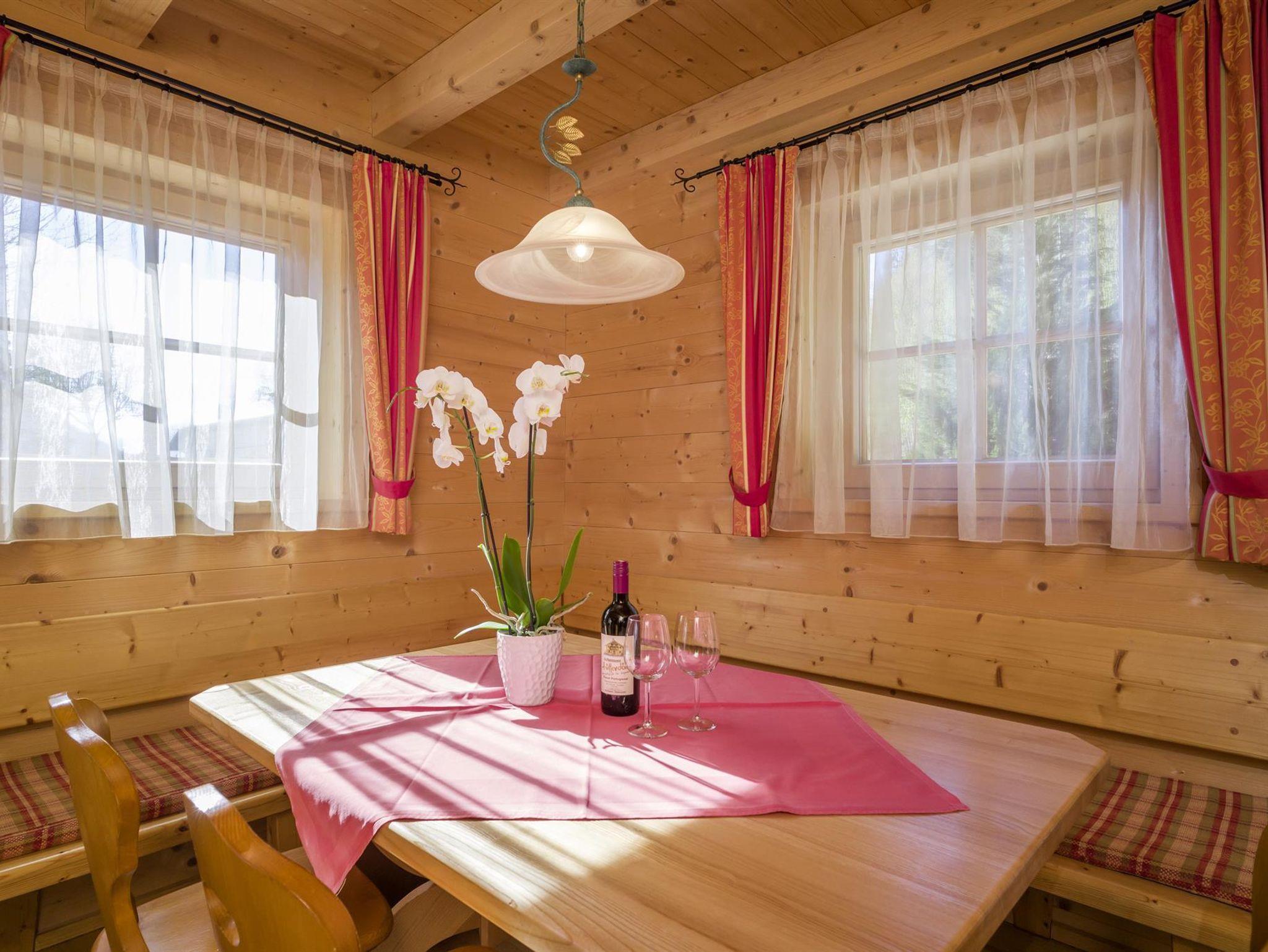 Die Blockhäuser sind eingerichtet mit handgearbeiteten Massivholzmöbeln und Naturholzböden. Terrasse , Balkon, überdachter Autoabstellplatz; Bettwäsche, Handtücher und Geschirrtücher werden von uns gestellt. Waschmaschine und Wäschetrockner gegen Gebühr im Camping-Sanitärhaus.