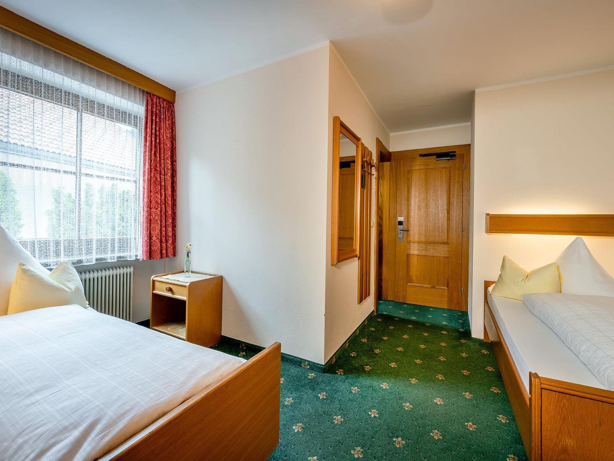 Unser Familienzimmer (33 m²) besteht aus einem Doppel- und einem Zweibettzimmer (mit 2 Betten á 90x190 cm) mit Durchgangstür und ist daher bestens geeignet für Familien mit ein bis zwei Kindern: Gemeinsames Badezimmer (Dusche, WC, Haarföhn), Telefon, LCD-Sat-TV mit Radiosendern, kostenlosem Highspeed WLAN, Safe und Balkon. In unserem Nebenhaus (Bistro-Café MG²) in der 1. Etage gelegen (ohne Aufzug).