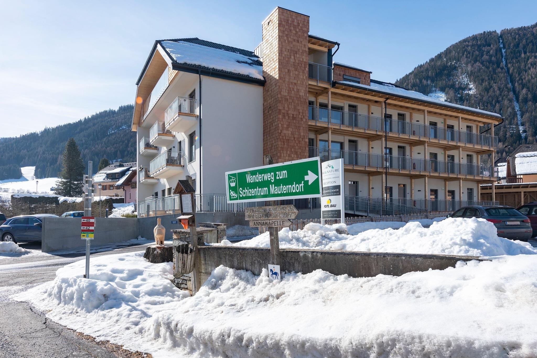 Fantastisk leilighet, nær skiheisene med skibussens holdeplass rett utenfor! I denne høykvalitetsleiligheten i SKI & NATURE-komplekset kan du starte dagen med en fantastisk utsikt over fjellene og byen Mauterndorf. Denne attraktive og stilfulle bygningen tilbyr par og familier en uforglemmelig ferie i umiddelbar nærhet av sentrum av Mauterndorf (bare 200 meters gange). Skiområdet Mauterndorf/St. Michael ligger i umiddelbar nærhet. Om vinteren stopper skibussen rett utenfor døren og tar deg også til andre fantastiske vintersportsområder, som snøsikre Obertauern. Romantiske hestekjøringer og aking er også en del av ferieopplevelsen din i Mauterndorf! Denne regionen har også mye å tilby om sommeren: fotturer, terrengsykling, svømming og mange andre aktiviteter venter på deg. Leiligheten i første etasje har to balkonger. Bygningen er utstyrt med heis og et skirom med støvelvarmere. Parkering er tilgjengelig. Nyt stilfulle kvelder med en matbit og en drink på en av balkongene.