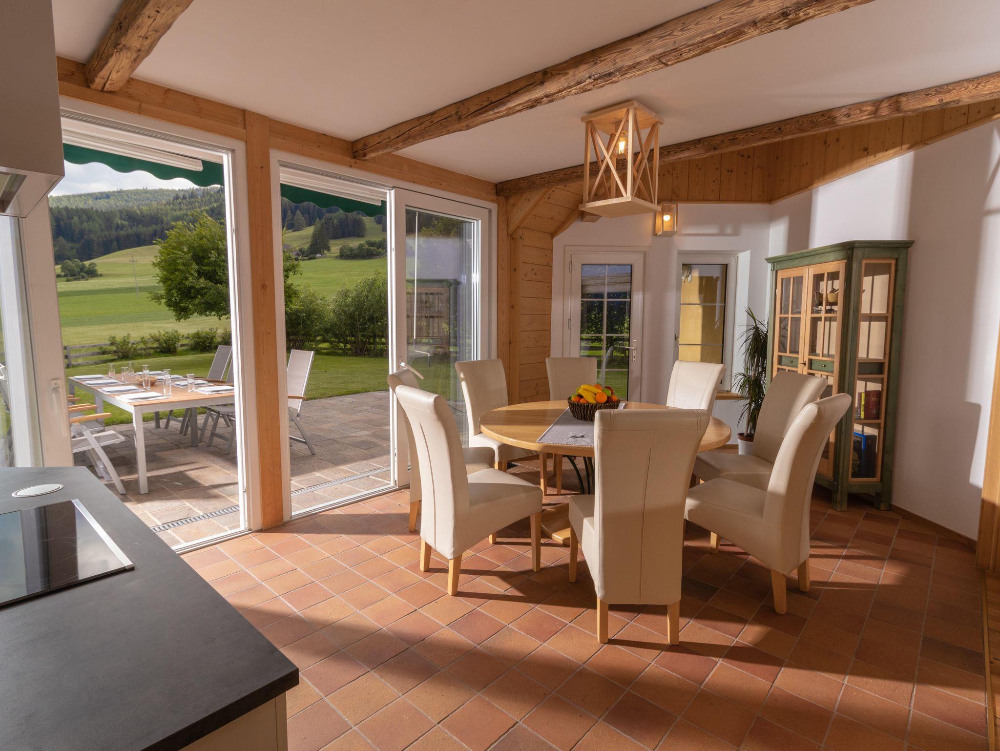 Die 177m² Suite besteht aus einem großzügigem Wohnbereich. Hier sorgt der Kachelofen für wohlige Wärme. Der Essbereich mit offener und komplett ausgestatteter Küche grenzt an die 60 m² große Terrasse auf der Sie mit herrlichem Blick auf die Lungauer Bergwelt eine Tasse Kaffee aus Ihrer Nespresso-Maschine genießen können. Das Hauptschlafzimmer mit en suite Badezimmer ist zusätzlich mit einem Flatscreen TV sowie einem Möbelsafe ausgestattet. Auch in den anderen drei Schlafzimmern befinden sich ein Safe und ein 40 Flatscreen TV, der an einer Altholzwand montiert ist. Für eines der 3 Schlafzimmer gibt es ein separates Duschbad. Die Gäste der anderen beiden Schlafzimmer teilen sich ein modernes Duschbad.