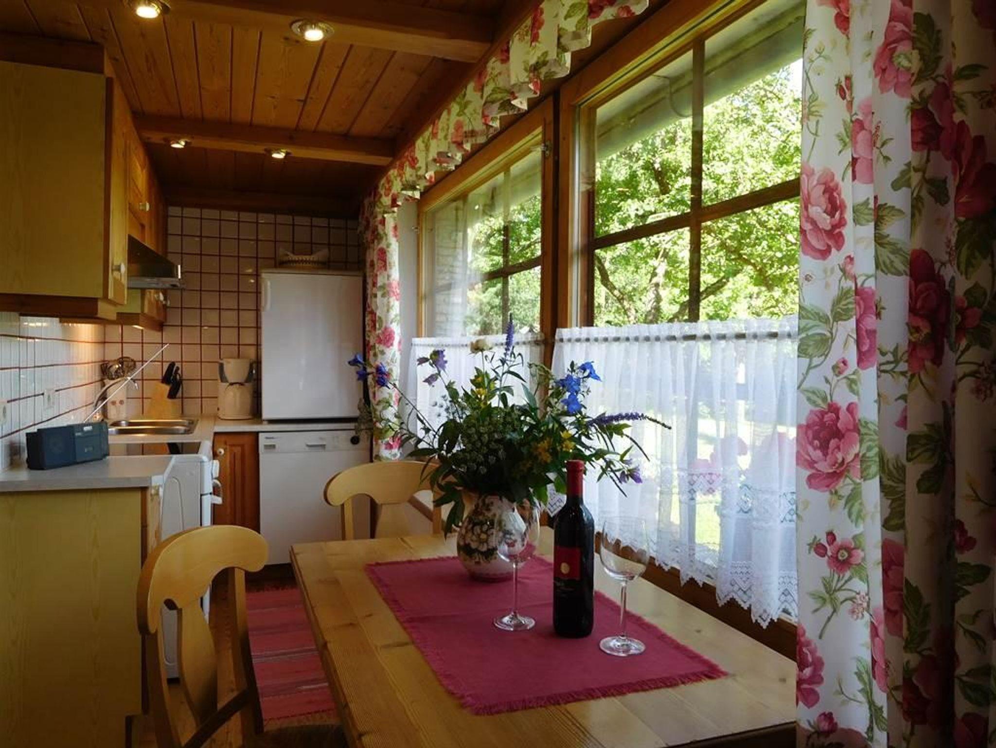 Ländlicher Stil, mit viel Vollholz eingerichtet.