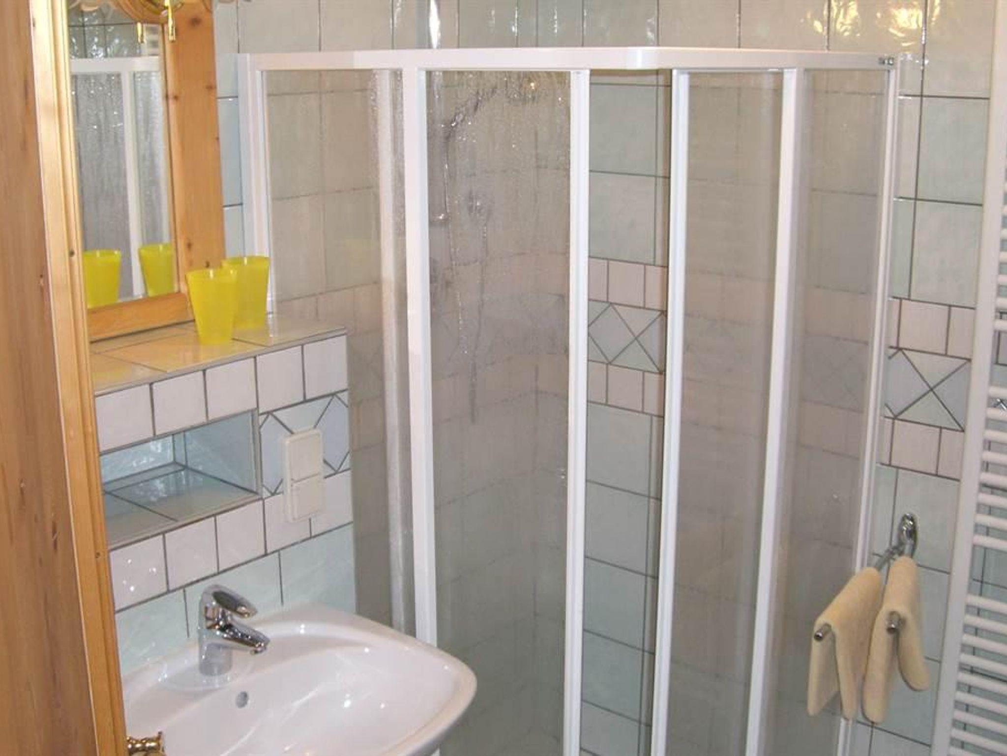 Warmes Badezimmer mit Dusche/WC, Haarfön, Bodenheizung u. Handtuchtrockner. Genügend flauschige Hand-u.Badetücher.