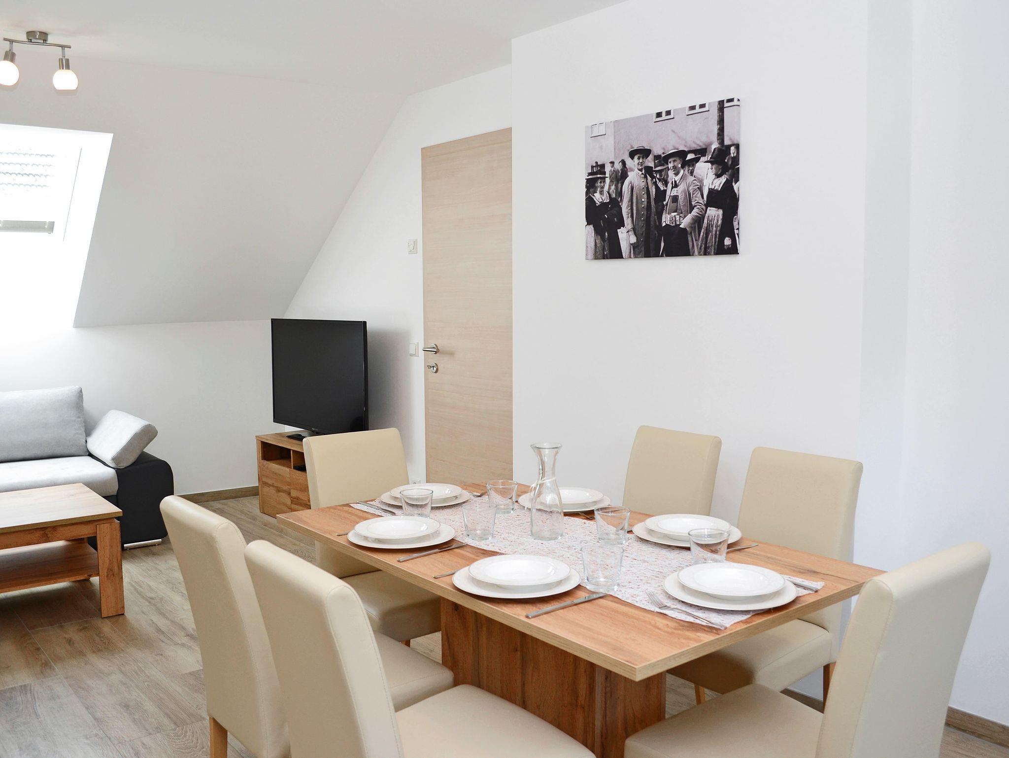 AUSSTATTUNG: Alle Wohnungen bieten stilvolle Schlafzimmer mit je einem großen Doppelbett (Boxspringbetten), Wohnraum und voll ausgestatteter Küche, Badezimmer mit Dusche, WC und teilweise Badewanne. Es gibt eine Terrasse mit Sitzmöglichkeiten und Raucherbereich sowie einen großen gepflegten Garten mit Spielgeräten und kostenlosen Parkplatz.