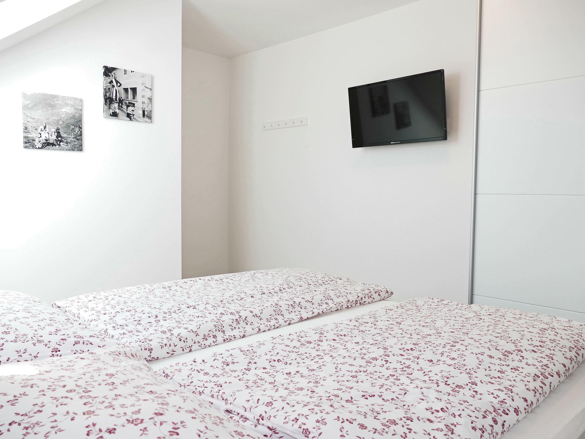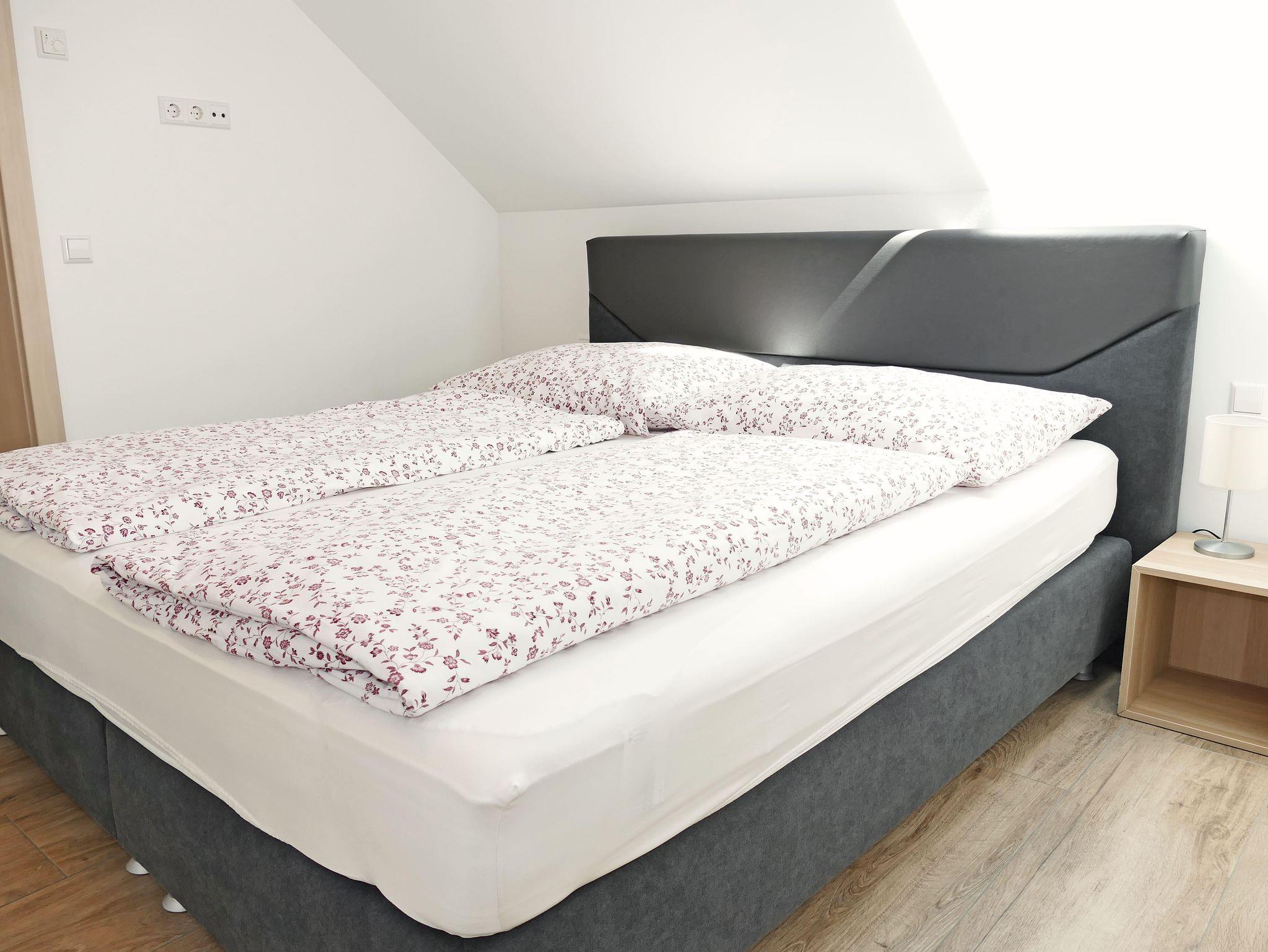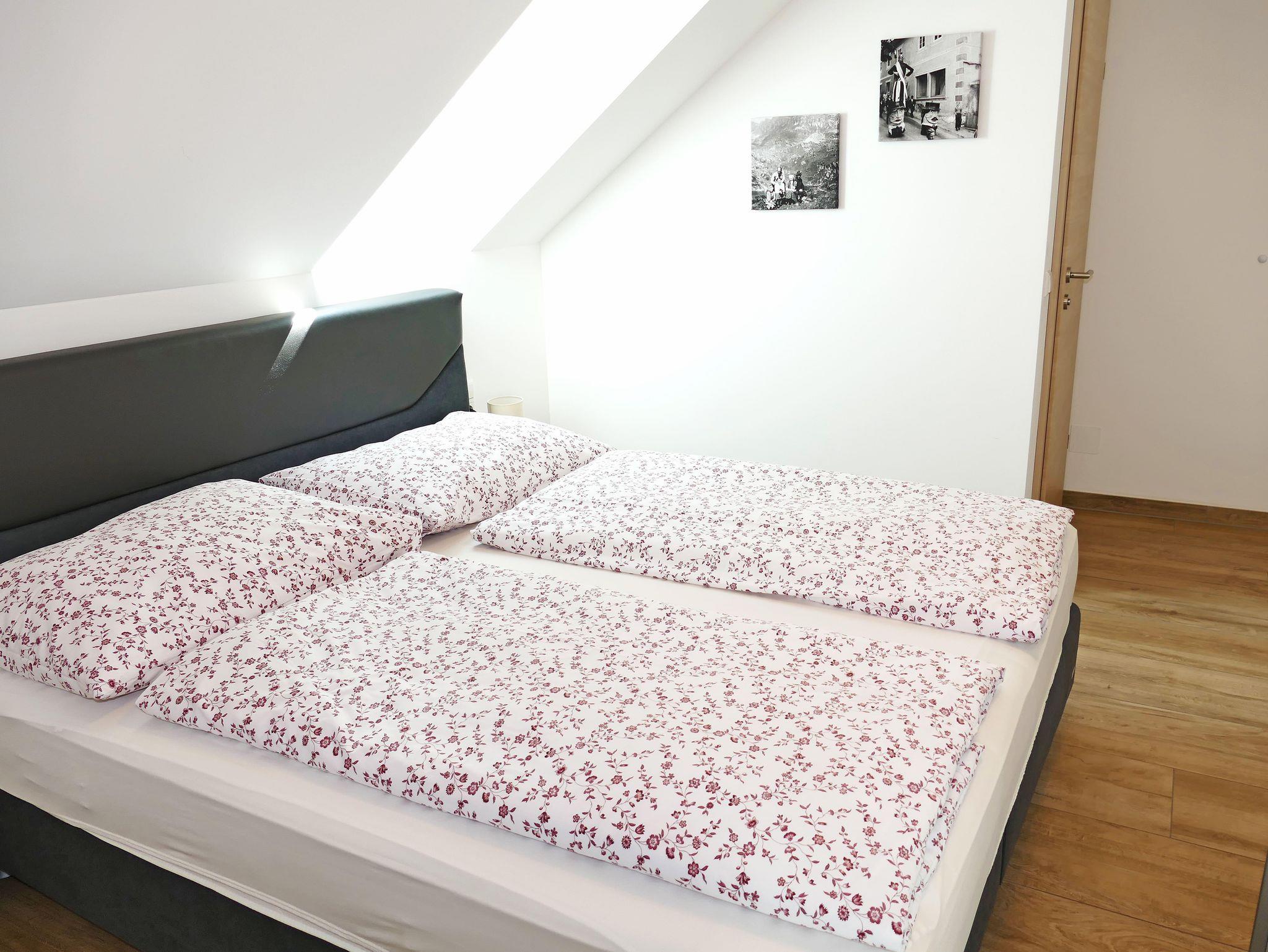 • 1 Schlafzimmer mit Doppelbett und Platz für ein Kinder-Beistellbett