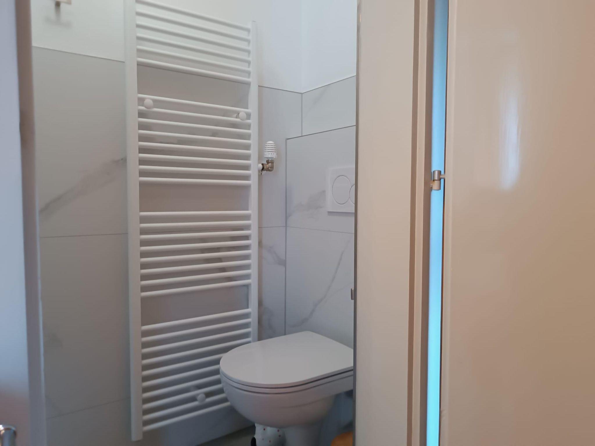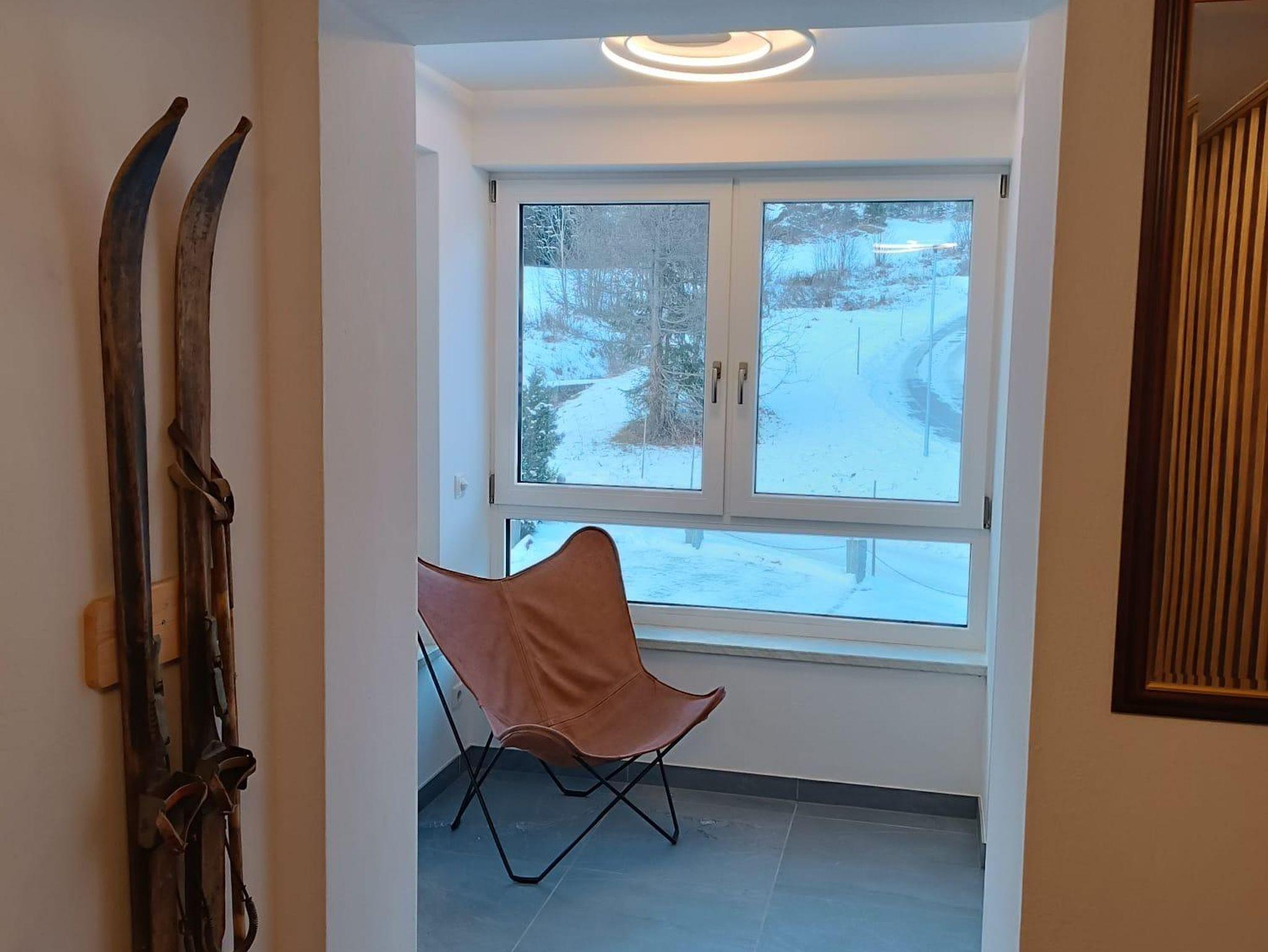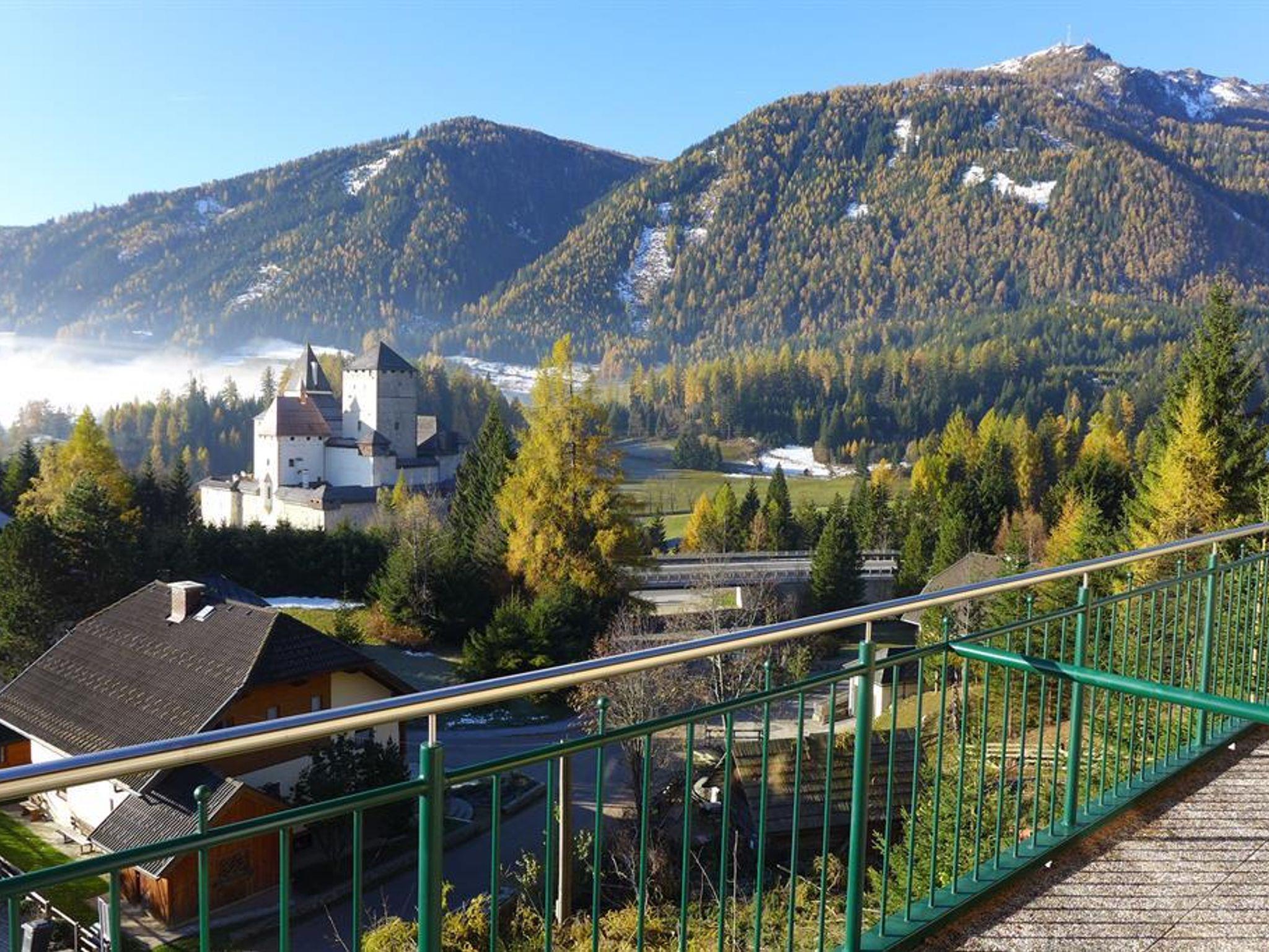 Hell u. geräumig mit einem kleinem Vorraum und eingebautem großen Wandschrank, Safe, 2 Waschbecken mit Unterbau und großem Spiegel, Föhn, Dusche und Toilette getrennt, Wohnbereich mit Kitchenette (Geschirrspülbecken, Kühlschrank, 2 Platten-E-Herd, Apothekerschrank, Wasserkocher, Kaffeemaschine, Mikro, genug Geschirr und Besteck), gemütliche Couch, Essecke, Kabel-TV-Großbild. Das Schlafzimmer ist mit einem Doppelbett, einer Sitzcouch zum Ausziehen, Sitzgruppe, Garderobe und eingebautem Kasten ausgestattet. Das App. befindet sich im ersten Stock. Sie erreichen das App. bequem mit dem Lift oder einfach über die Treppe. Der große Balkon mit 14 m² (Tisch, Schirm und Sessel) bietet eine beeindruckende Aussicht auf Burg, Ort und Berg!