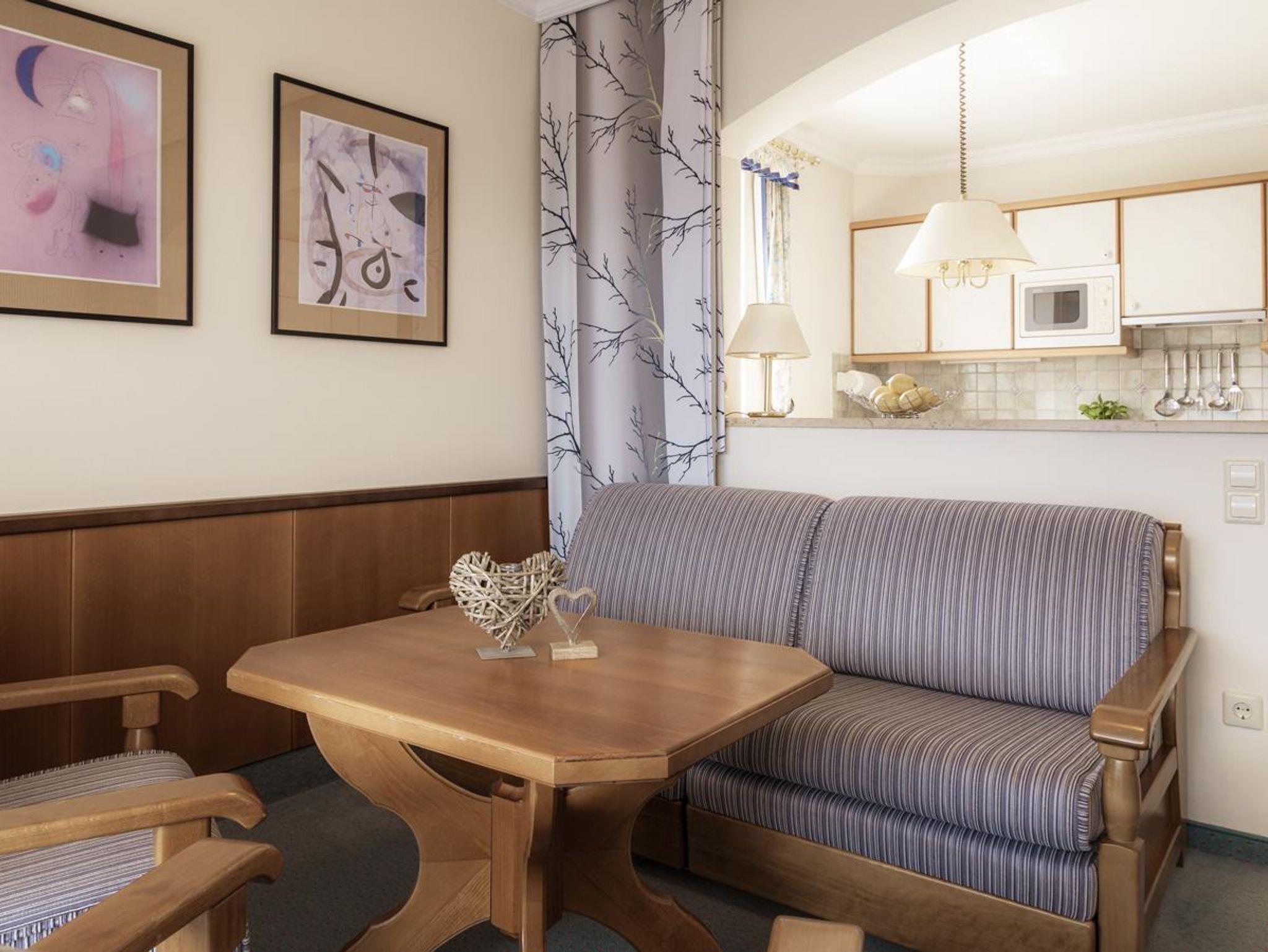 Appartements **** f.2-4 Personen,ca.55 m2 Vorraum,getrenntes WC,Badezimmer m.z.T.Doppelwaschbecken,Haarfön, gemütl.Wohnküche m. kompl. Ausstatt.,Essecke, 1 Schlafzimmer m.TV,1 Wohnzimmer(Doppelschlafcouch) m.TV,Internetanschluß,Telefon,Safe,Balkon