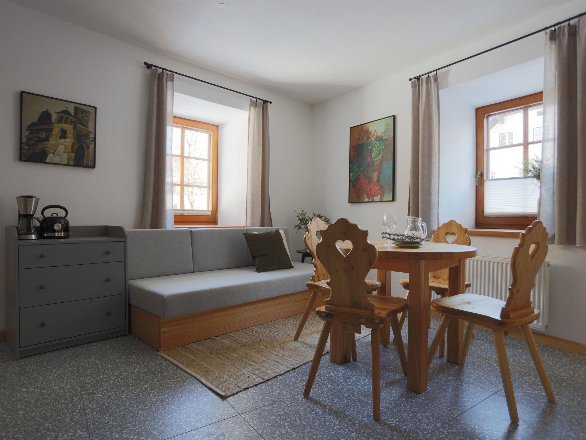 Die 3 Appartements für 3 – 7 Personen wurden in bester Bau- und Wohnqualität errichtet und bieten unseren Gästen eine komfortable Ausstattung. Wohnzimmer mit Schlafcouch, Schlafzimmer mit Doppelbett, Badezimmer, WC, moderne Küche ausgestattet mit Backrohr und Geschirrspüler, Skiraum und Schuhtrockner……. weiters Entertainment mittels Flatscreen-TV und Wlan.