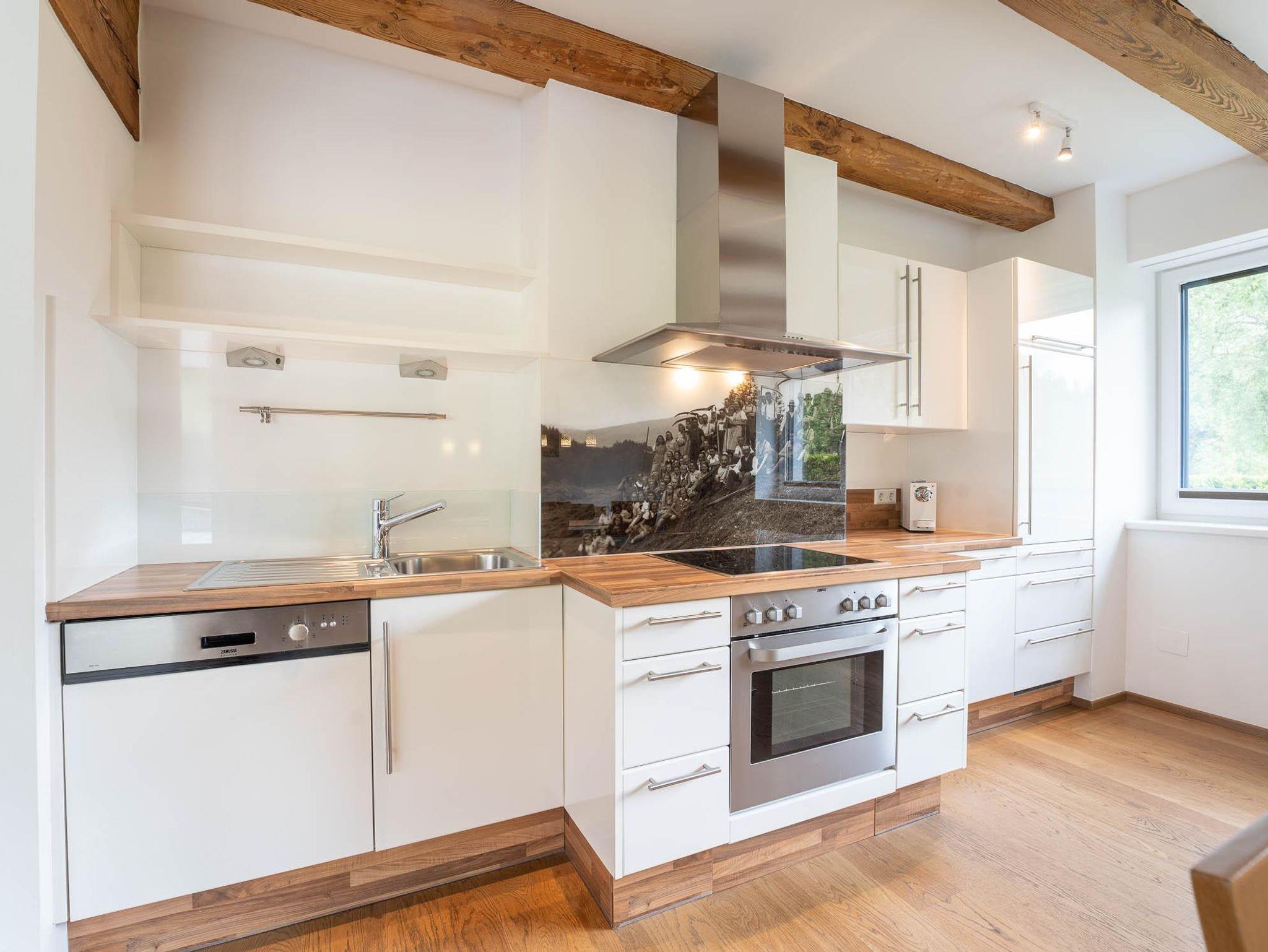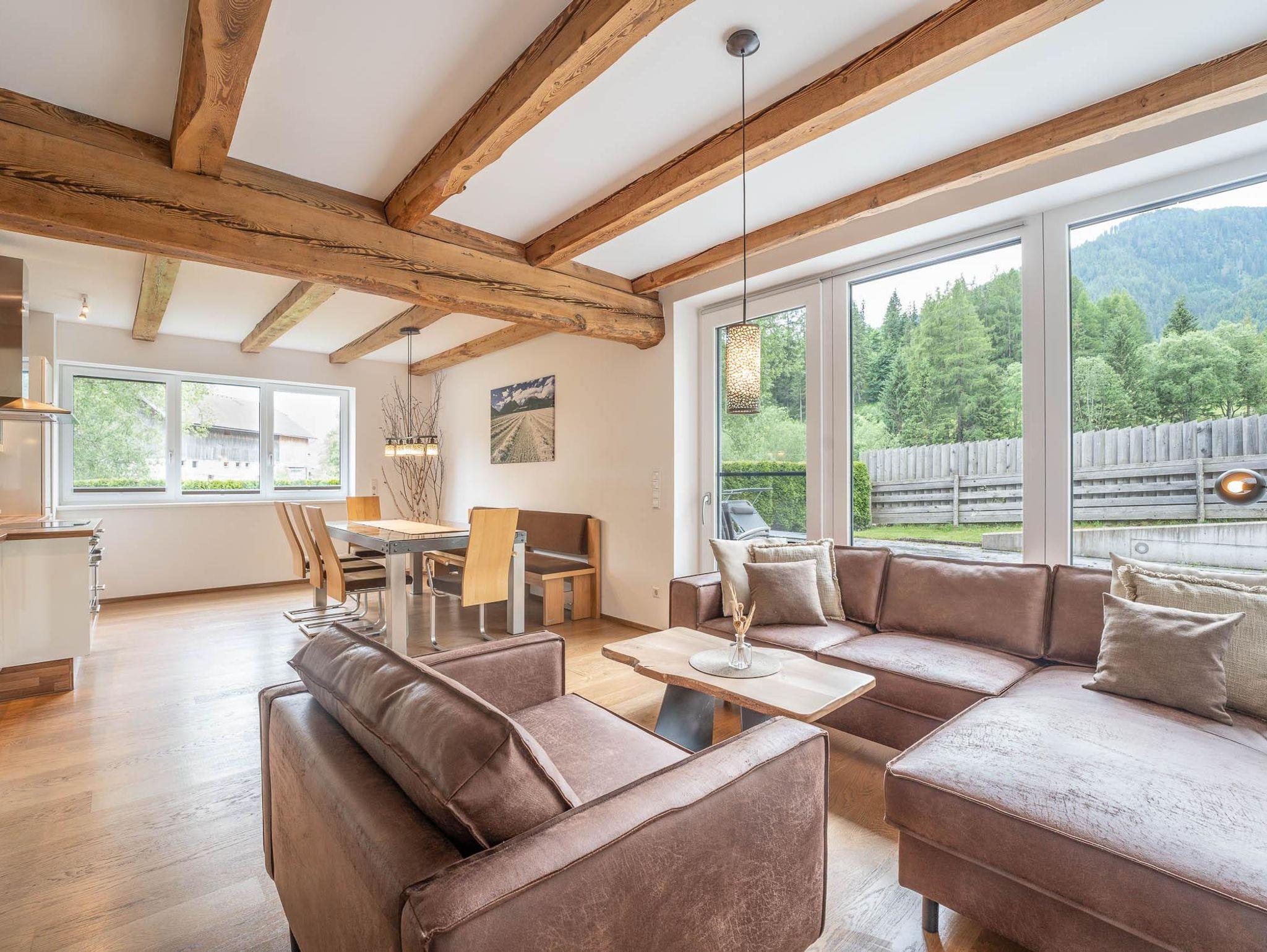 Geschmackvoll, modern eingerichtete Ferienwohnung mit Parkettboden und exclusivem Interieur, Küche mit Esstisch und gemütlicher Sitzgruppe, 4 Schlafzimmer, 4 Duschen mit Fussbodenheizung, 4 getrennte WC, großer Plasma-TV im Wohnraum und jedem Schlafzimmer, Geschirrspüler, kostenloser Wireless-LAN-Internetzugang, Fön, Radio, Safe, Lift, Allergiker-Bettwäsche, Terrasse, Nichtraucherhaus, behindertengerechte Wohnung.