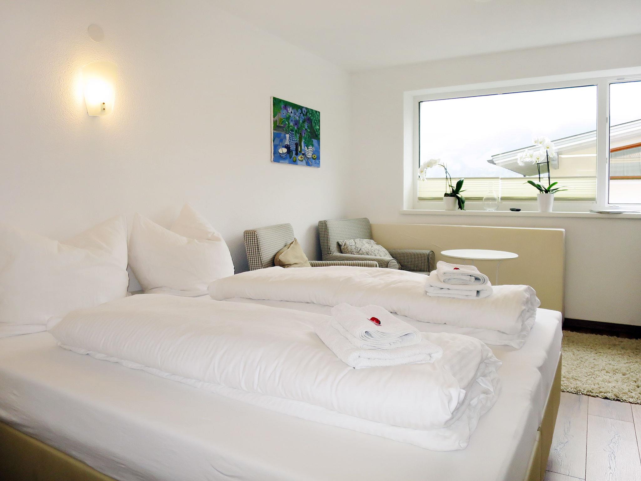 "Tamerl", 2-room apartment 30 m2, on the ground floor. Bright, renovated in 2014, tasteful furnishings: 1 open room with 1 double bed, 1 folding bed, shower/WC and satellite TV. Small kitchen (dishwasher, 4 ceramic glass hob hotplates, toaster, kettle, microwave, freezer, grill, electric coffee machine) with dining nook. Oil heating. Facilities: Internet (WiFi, free). Parking (2 cars). Please note: non-smokers only. Smoke alarm.