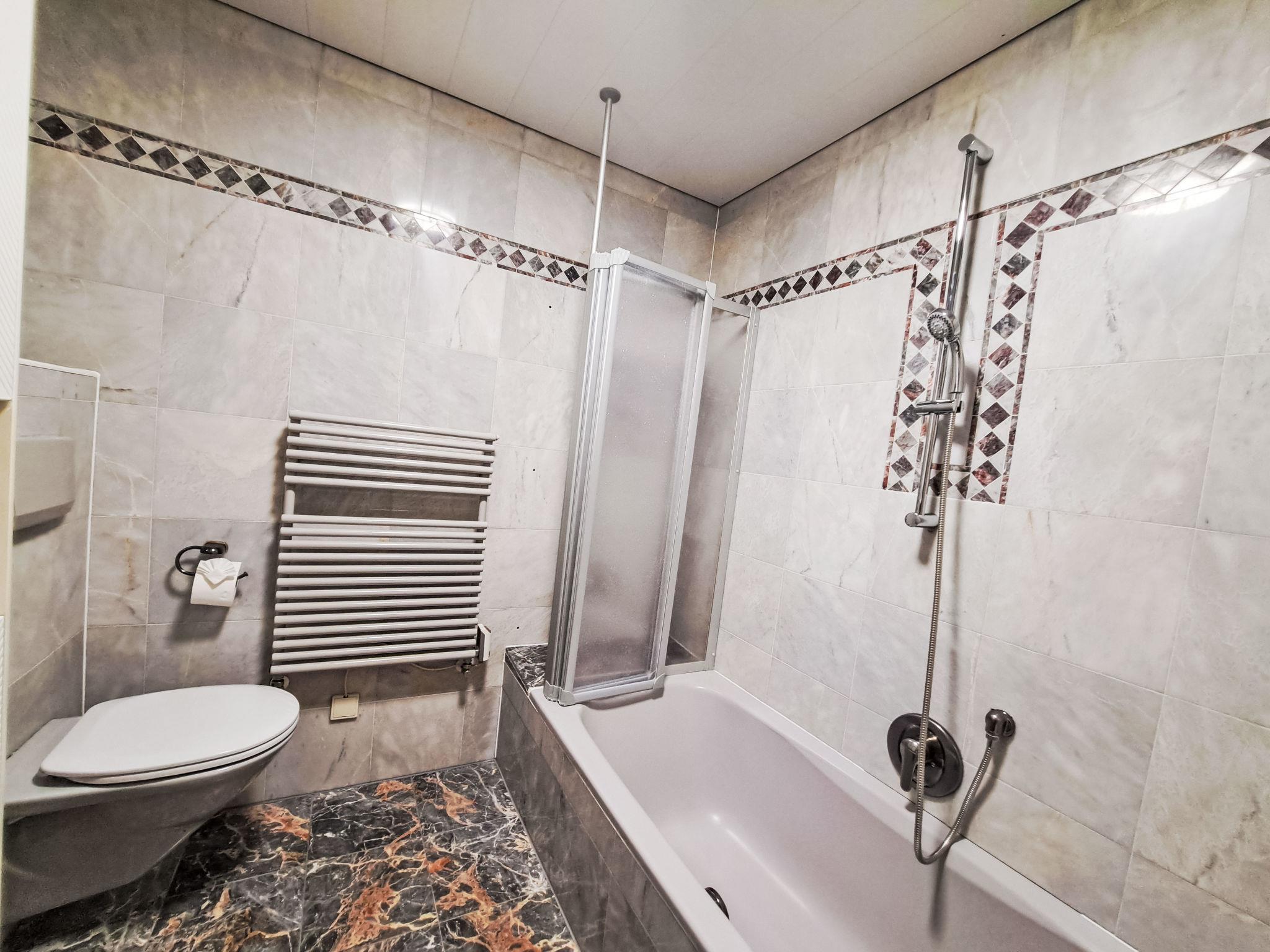 4-room apartment 120 m2. Spacious and bright, modern and tasteful furnishings: entrance hall. Exit to the balcony. 1 room with 1 sofabed and 1 double bed. 2 double bedrooms. Living room with satellite TV. Exit to the balcony. Open kitchen (oven, dishwasher, 4 ceramic glass hob hotplates, toaster, kettle, electric coffee machine) with dining table. Bath/shower. Heating. Balcony, 50 m2. Balcony furniture. Very beautiful view of the mountains. Facilities: Internet (WiFi, free). Parking. Please note: maximum 1 pet/ dog allowed. Smoke alarm.