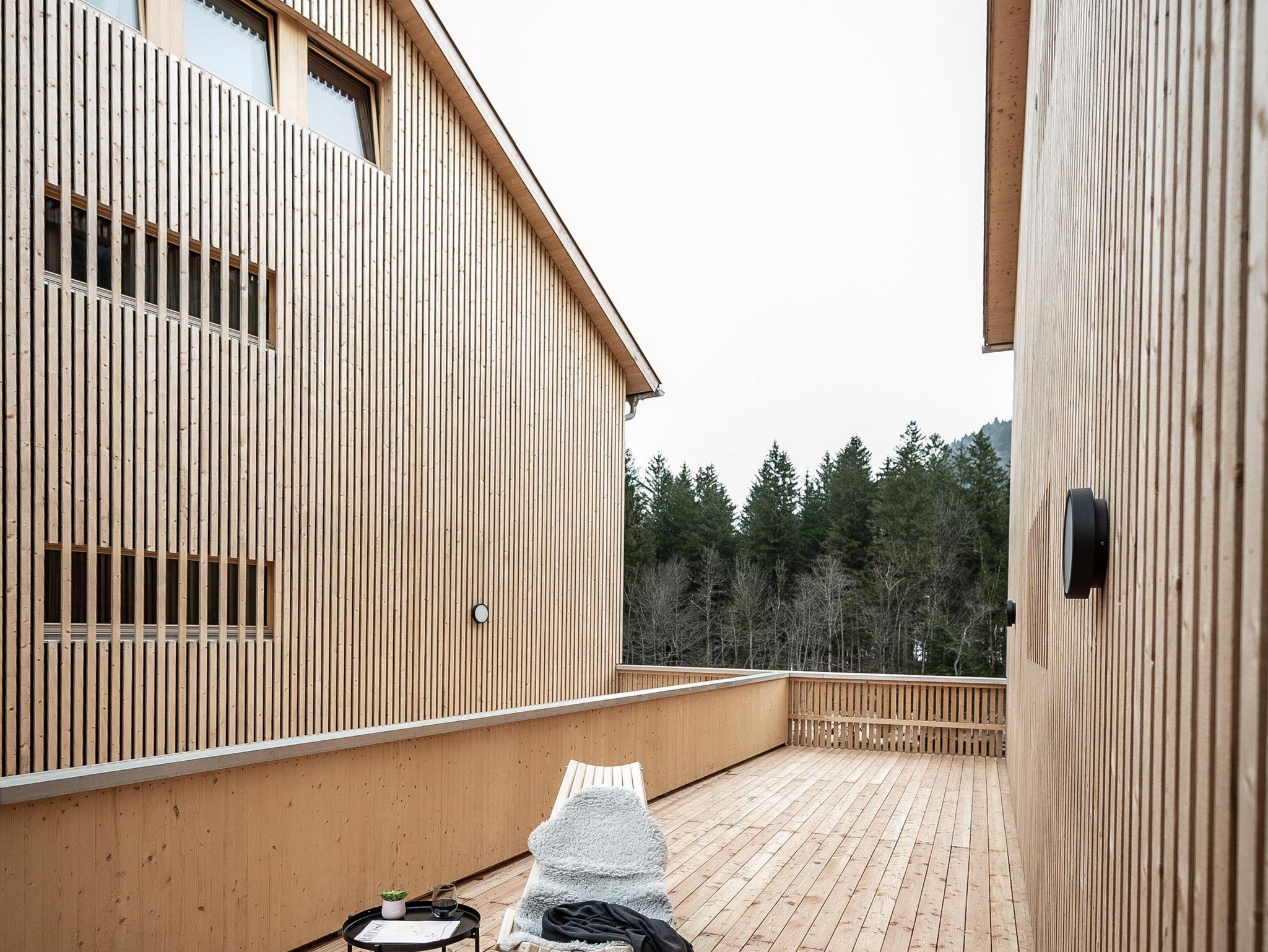 Apartment B5 ist perfekt für alle, die gern draußen sind – aber nicht auf Komfort verzichten wollen. Die riesige Terrasse mit Wasserfallblick ist euer Lieblingsplatz vom ersten Moment an. Offen, ruhig und ganz nah an der Natur – so fühlt sich Urlaub im Bregenzerwald an.