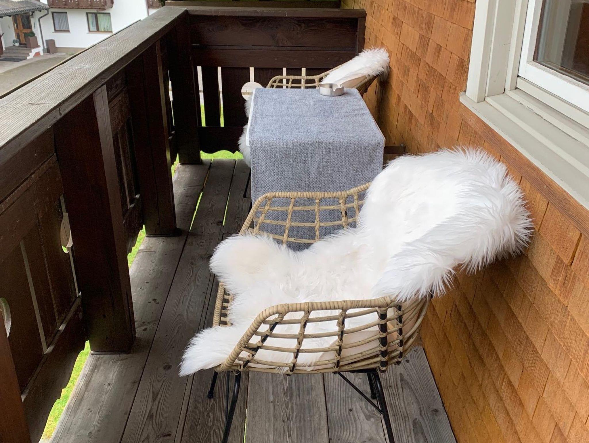 Der Balkon mit herrlichem Blick auf die Kanisfluh rundet das Ambiente ab – perfekt für ruhige Stunden mit Aussicht auf die Berge.