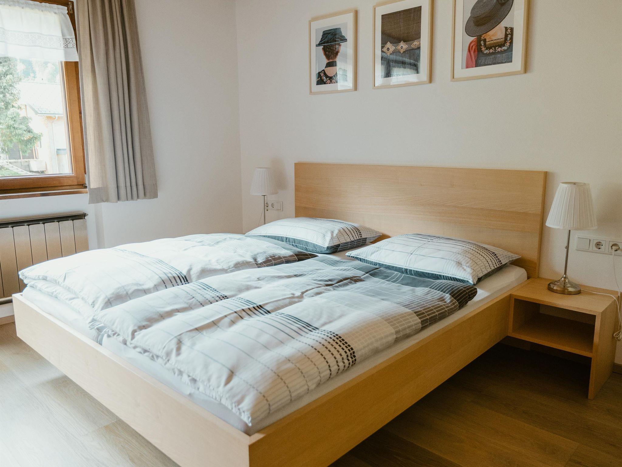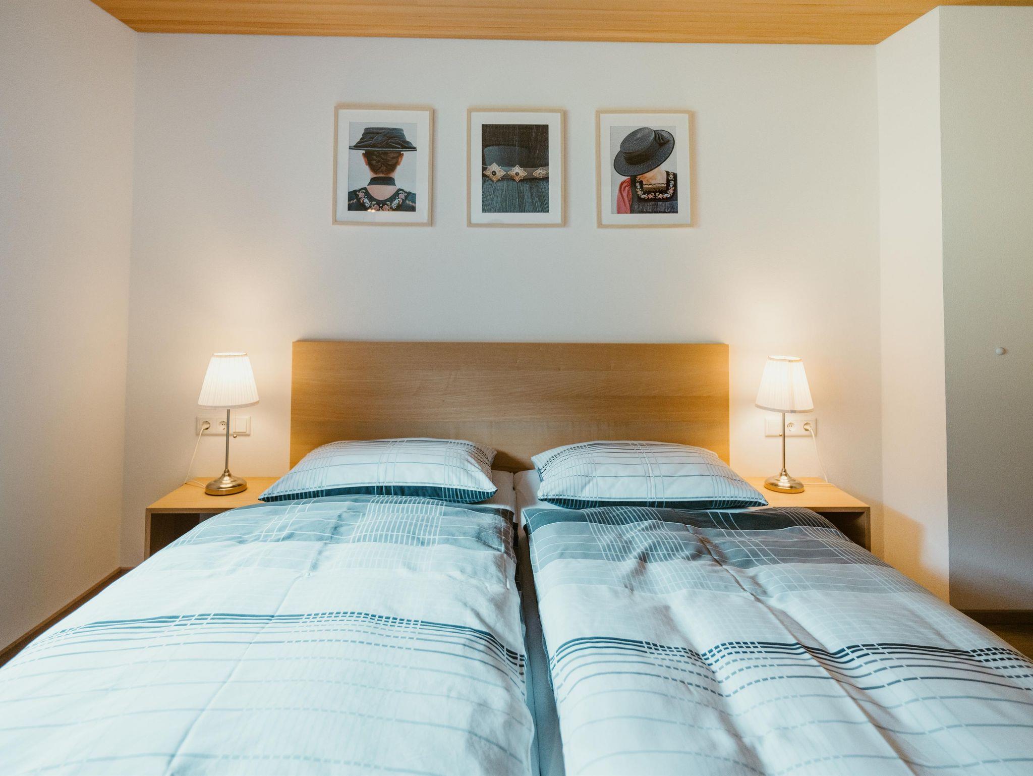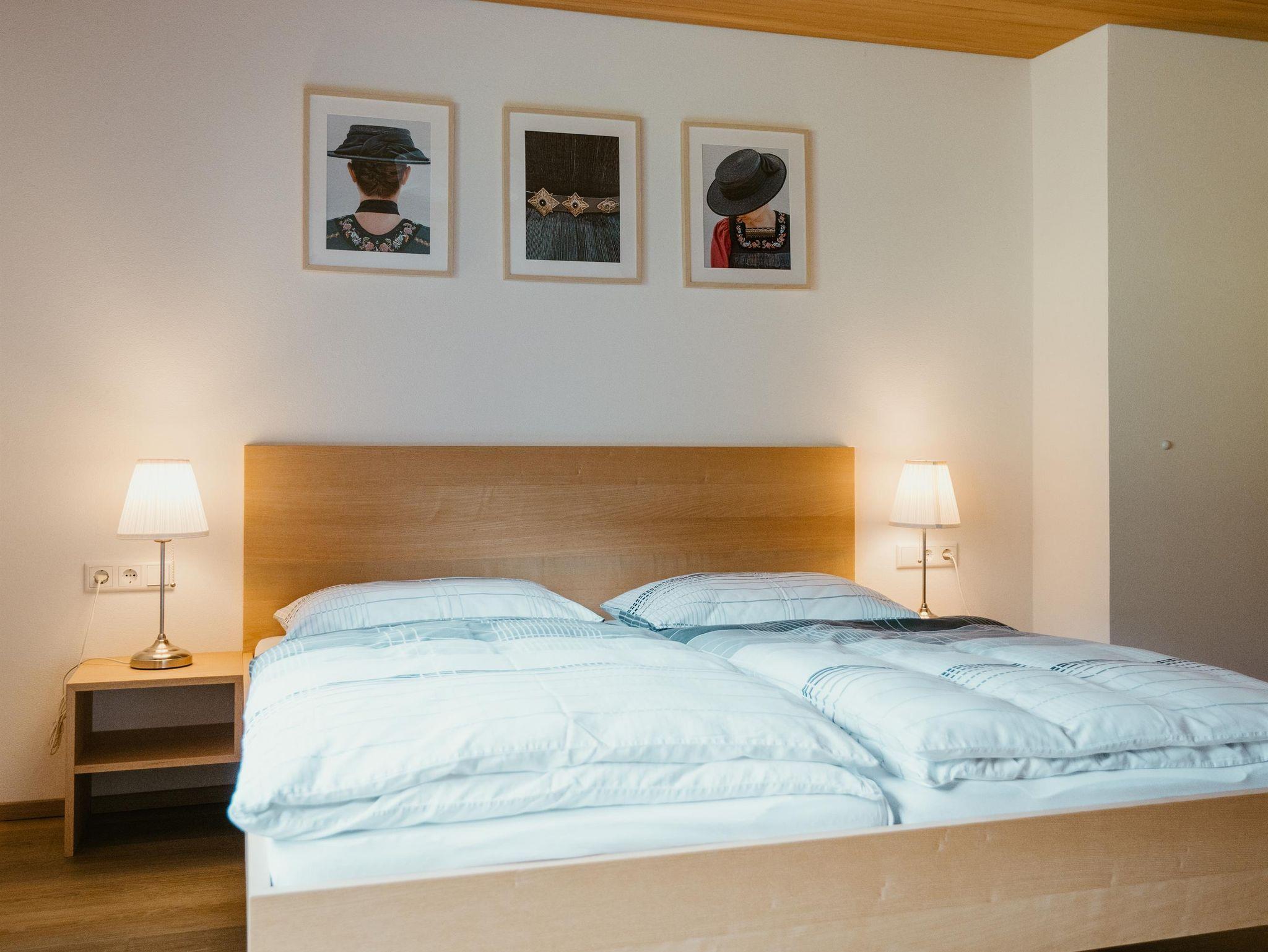 Doppelzimmer „Rossstelle für 2 Personen. Dieses Doppelzimmer können Sie bei Bedarf zum Appartement „Kanisfluh“ dazu buchen. So können Sie auch mit größeren Familien oder in Gruppen die schönsten Tage des Jahres bei uns verbringen.Das Doppelzimmer ist südseitig ausgerichtet und verfügt über einen Balkon. Das Zimmer ist damit besonders einladend, was durch die neuen Möbel und das geschmackvolle Badezimmer mit Toilette und beheizten Handtuchhaltern noch verstärkt wird. Auch dieses Zimmer verfügt über ein eigenes TV-Gefät.