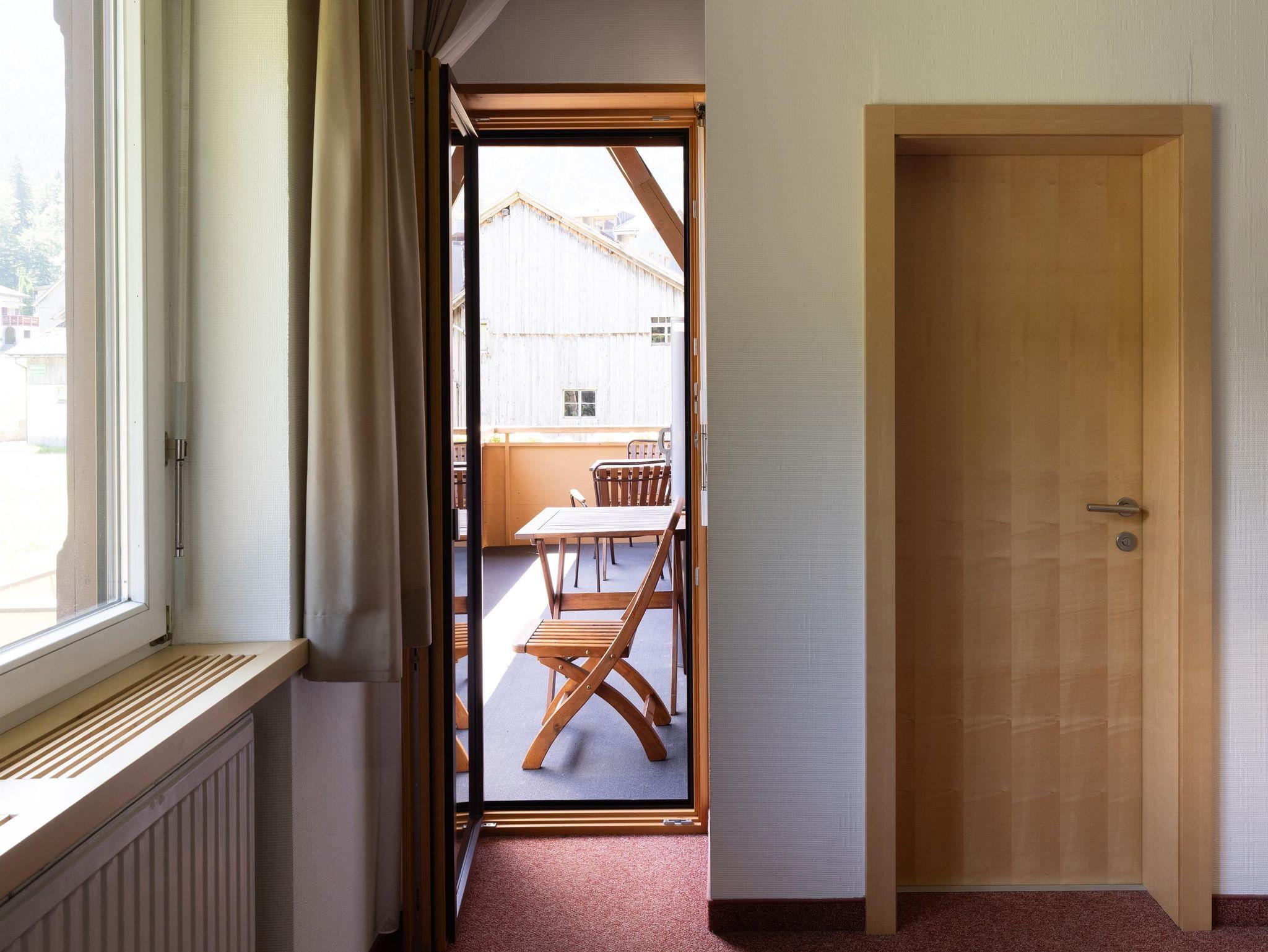 Dieses Doppelzimmer ist allergikerfreundlich und mit Holzparkett ausgelegt. Der Balkon ist nach Osten ausgerichtet und bietet einen direkten Blick auf die Kanisfluh, unseren Hausberg. Der Balkon (kann auch abgetrennt werden) wird mit dem Zimmer 4 geteilt. Die Nasszelle ist mit Dusche, WC, Haarfön, flüssiger Handseife sowie Hand- und Duschtüchern ausgestattet. Ein Flachbild-TV, ein Safe, ein Kühlschrank und WLAN sind ebenfalls vorhanden. Das Zimmer ist ca. 24 m² groß.