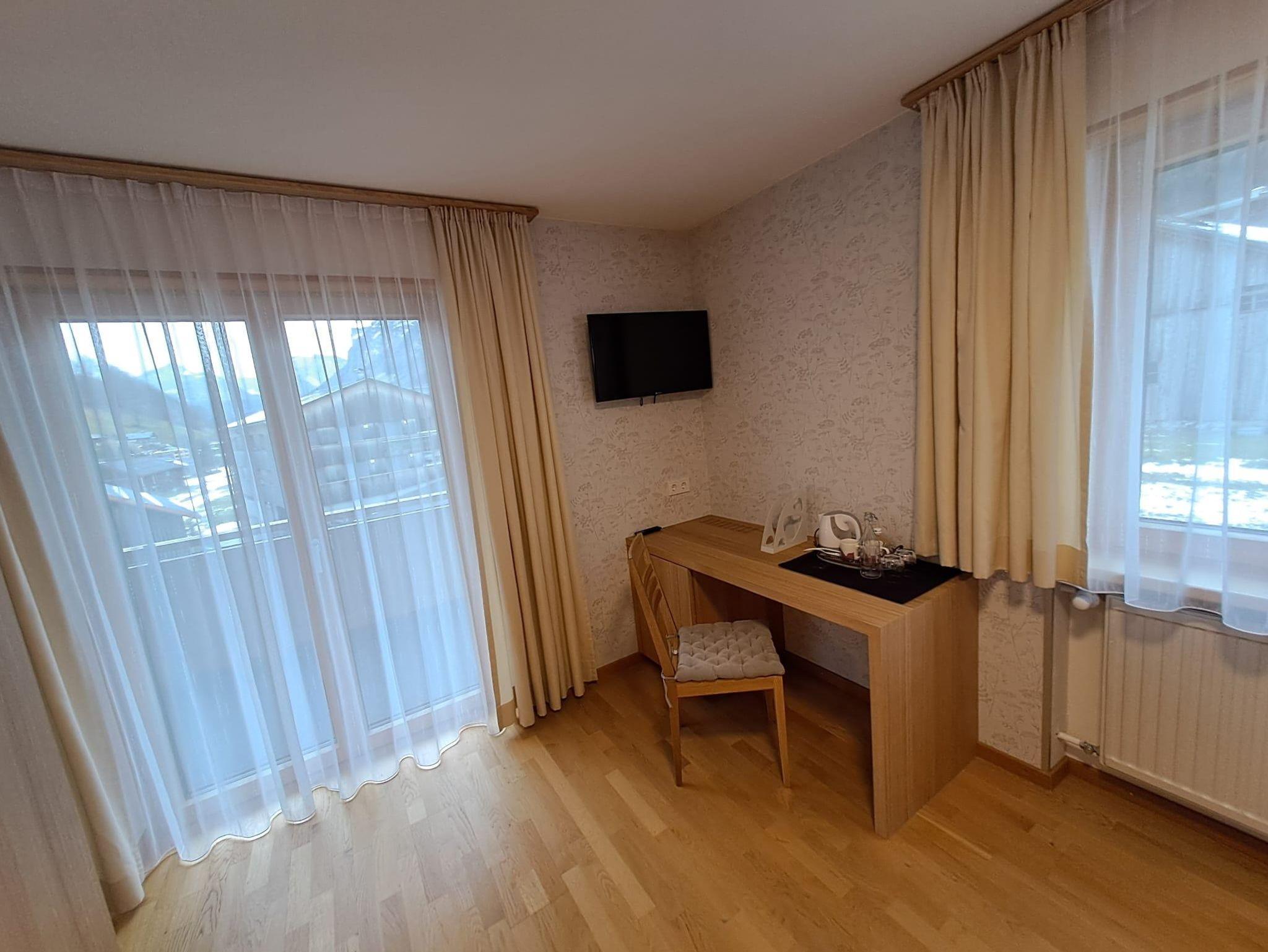 Dieses Doppelzimmer ist mit Teppich ausgelegt. Der Balkon ist nach Osten ausgerichtet und bietet einen direkten Blick auf die Kanisfluh. Die Nasszelle ist mit Dusche, WC, Föhn, Hand- und Duschtüchern sowie flüssiger Handseife ausgestattet. Ein Flachbild-TV, ein Safe, ein Kühlschrank und WLAN sind ebenfalls vorhanden. Das Zimmer kann auf Wunsch für 3 Personen aufgebettet werden.