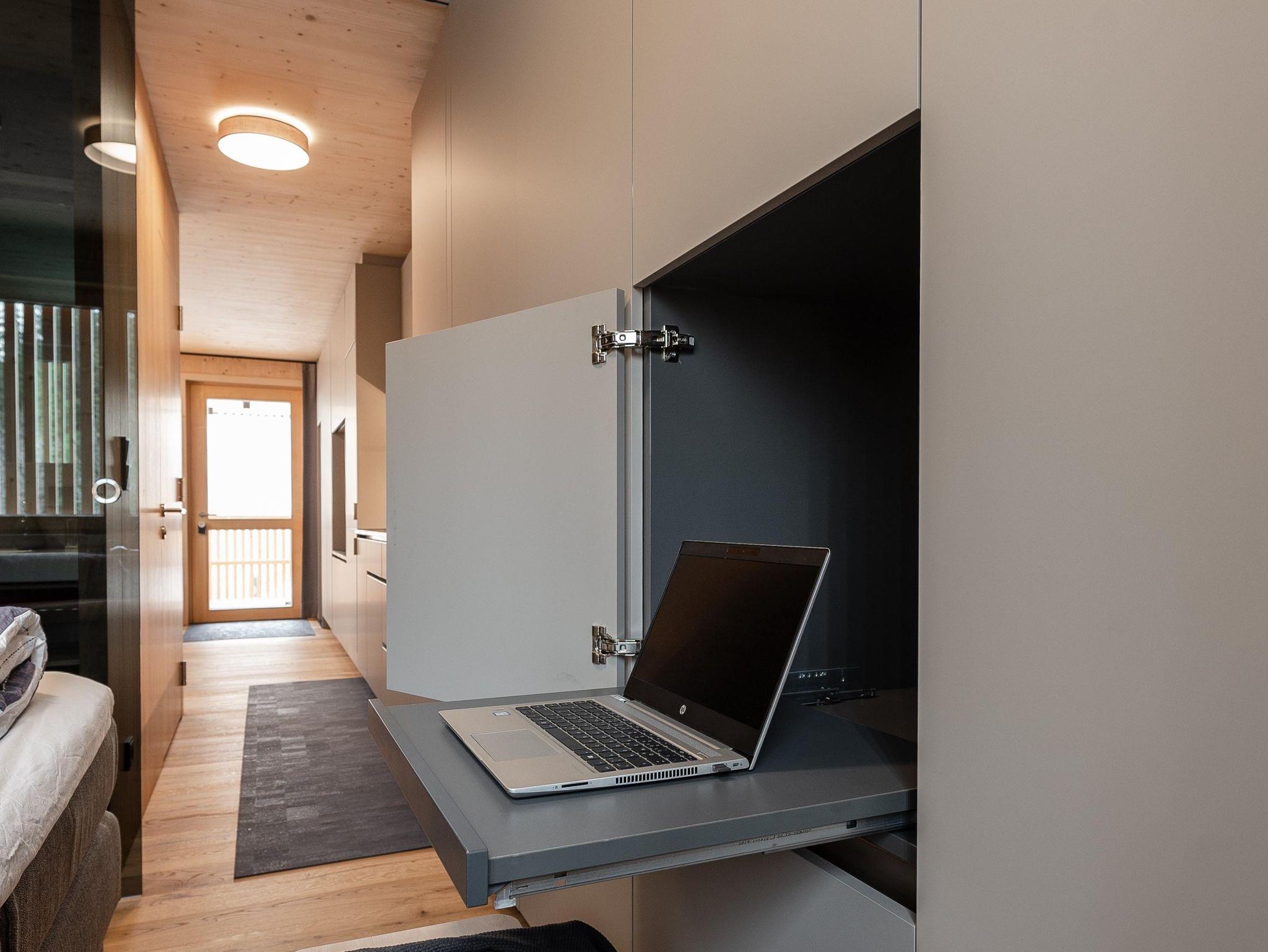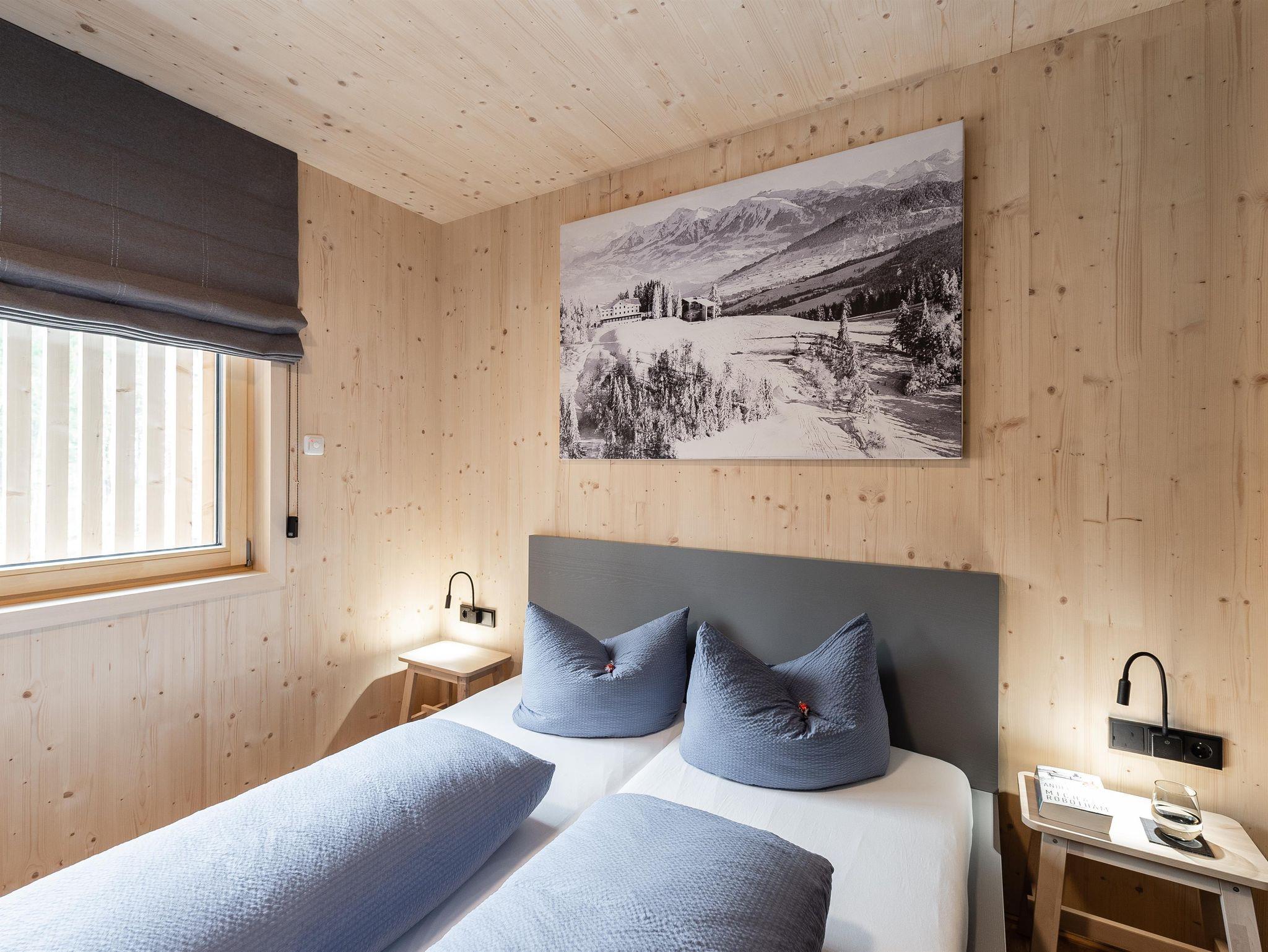 Bei der Einrichtung haben wir großen Wert auf naturbelassene Materialien gelegt: Fichte aus der Region, Korkteppiche und maßgefertigte Möbel vom Tischler. Der Bregenzerwald steht für echtes Handwerk – ein Besuch im Werkraum Bregenzerwald in Andelsbuch lohnt sich!