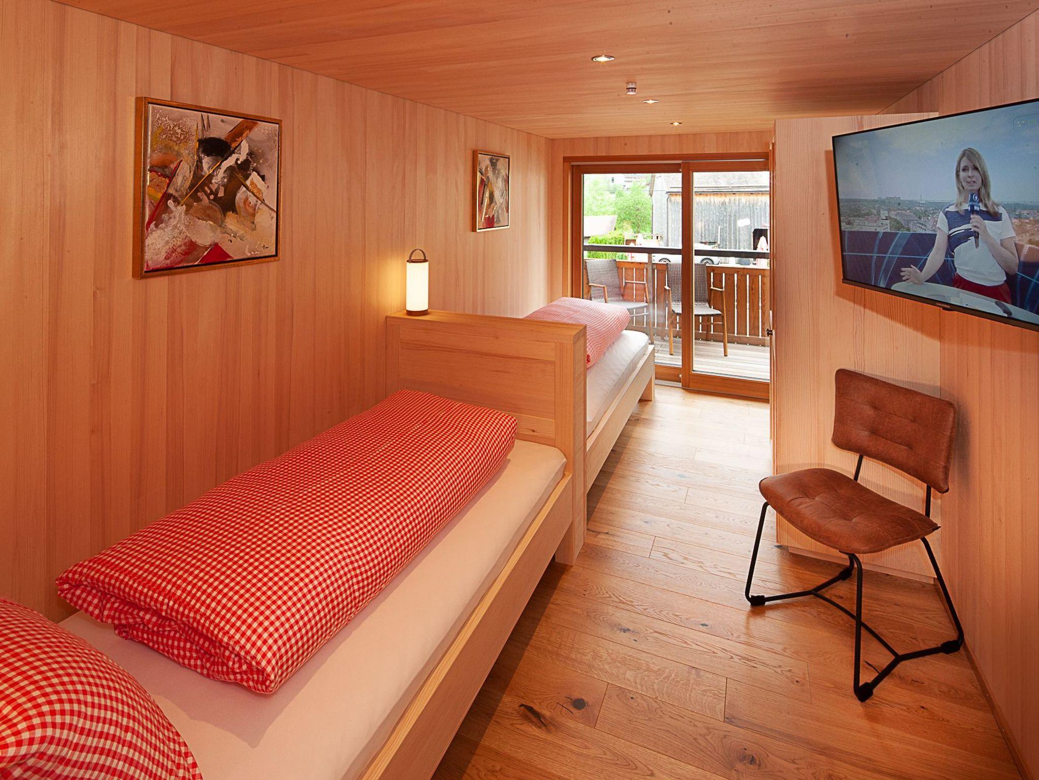 1 Doppelbettzimmer (180x200) und 2 Zimmer mit zwei Einzelbetten (90x200).
