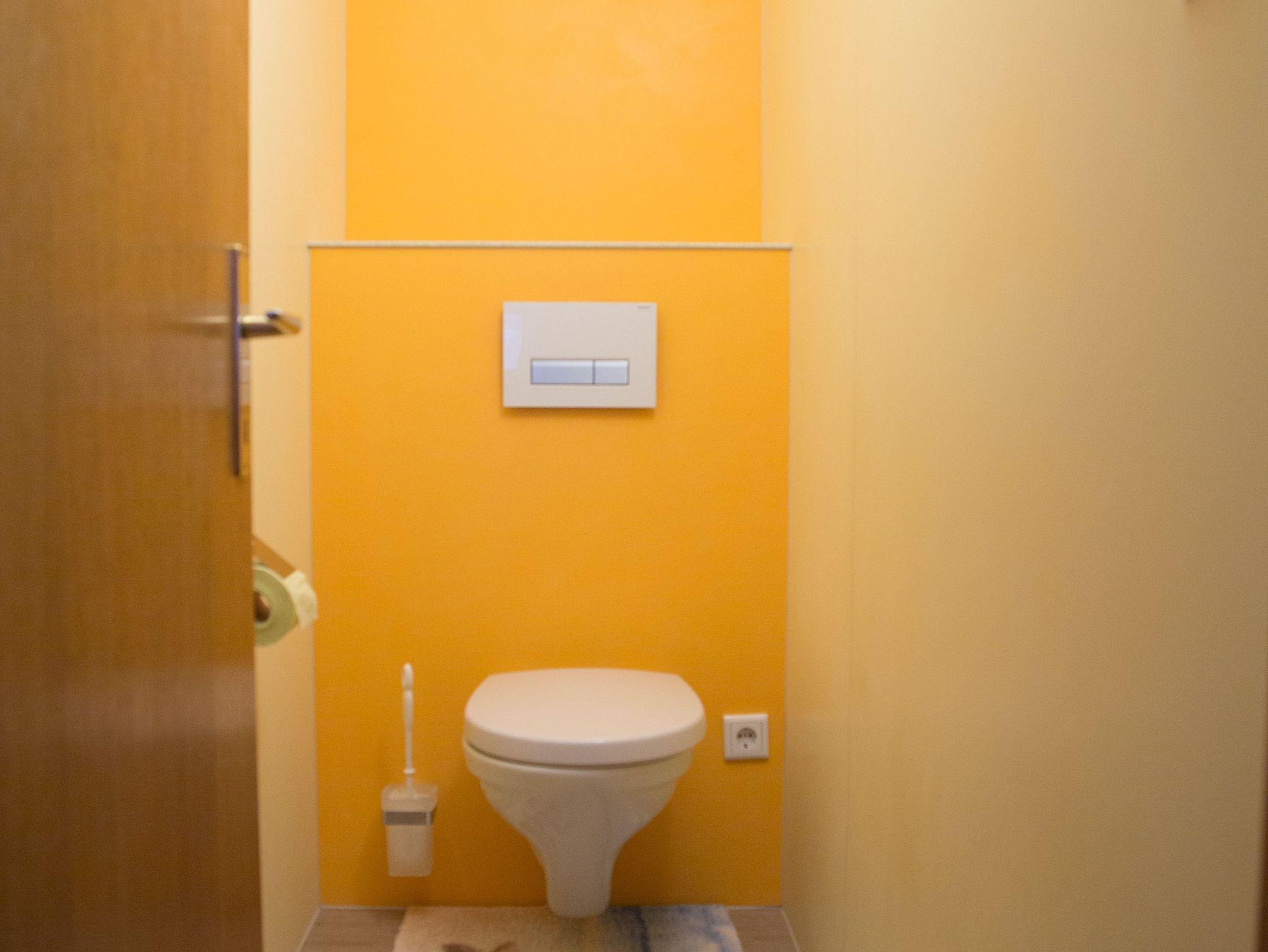 WC und Dusche sind räumlich getrennt. In den Schlafzimmern ist je ein Waschbecken vorhanden.