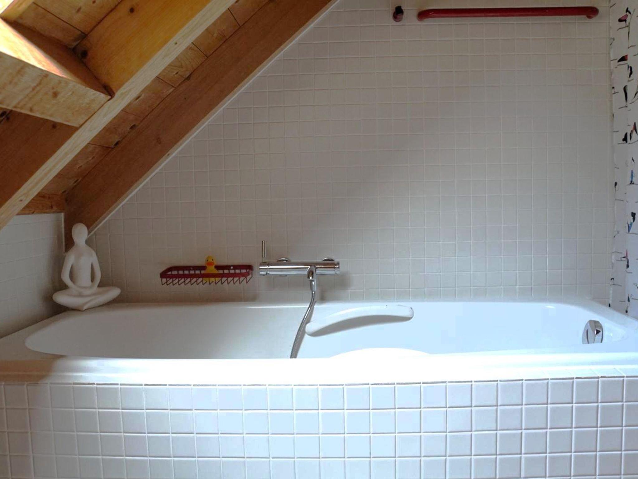 Das private Badezimmer verfügt über eine Badewanne, ein ebenerdige Dusche, WC und Föhn.