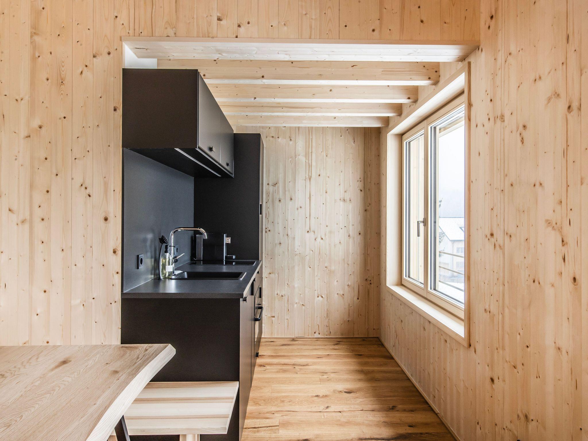 Das Ferienhaus wurde im Jahr 2022 fertiggestellt. Es wurde vom Bregenzerwälder Architekten Johannes Kaufmann geplant und von heimischen Unternehmen umgesetzt.