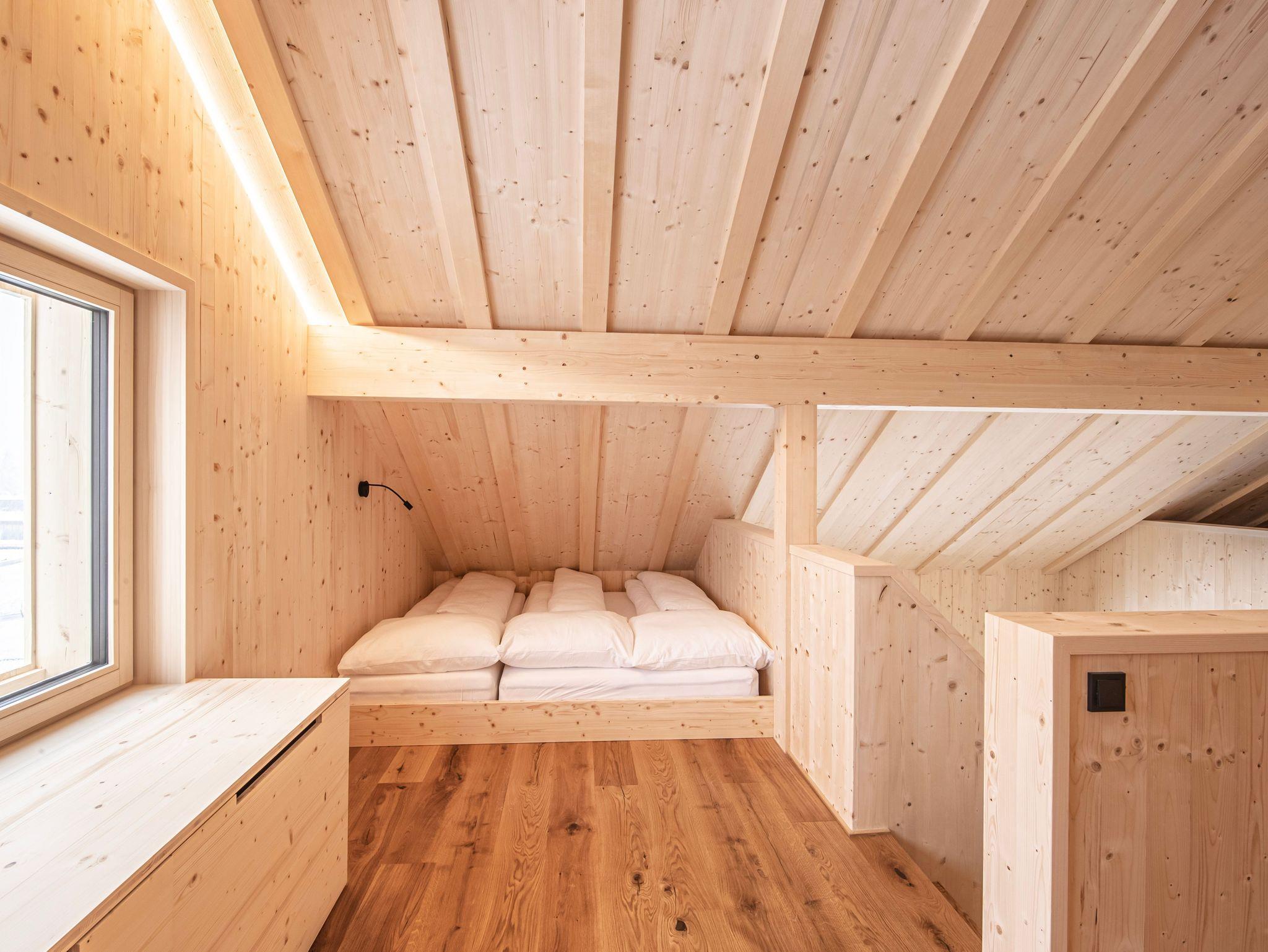 Das verwendete Fichtenholz bringt heimelige und gemütliche Atmosphäre ins Ferienhaus.