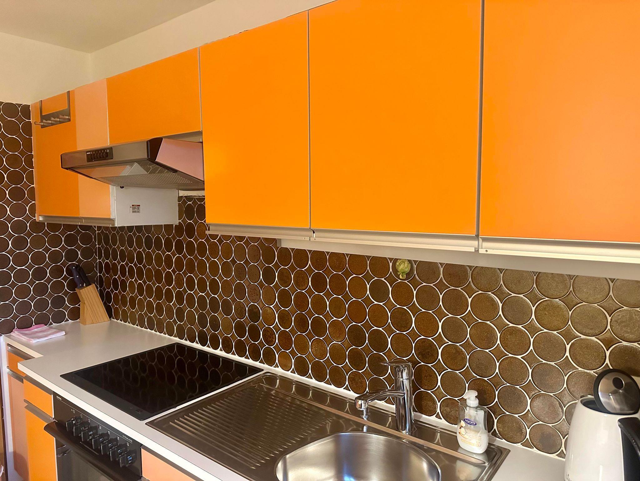 • Küche voll eingerichtet mit Geschirrspüler, Micro, Kühlschrank, Herd, Backofen