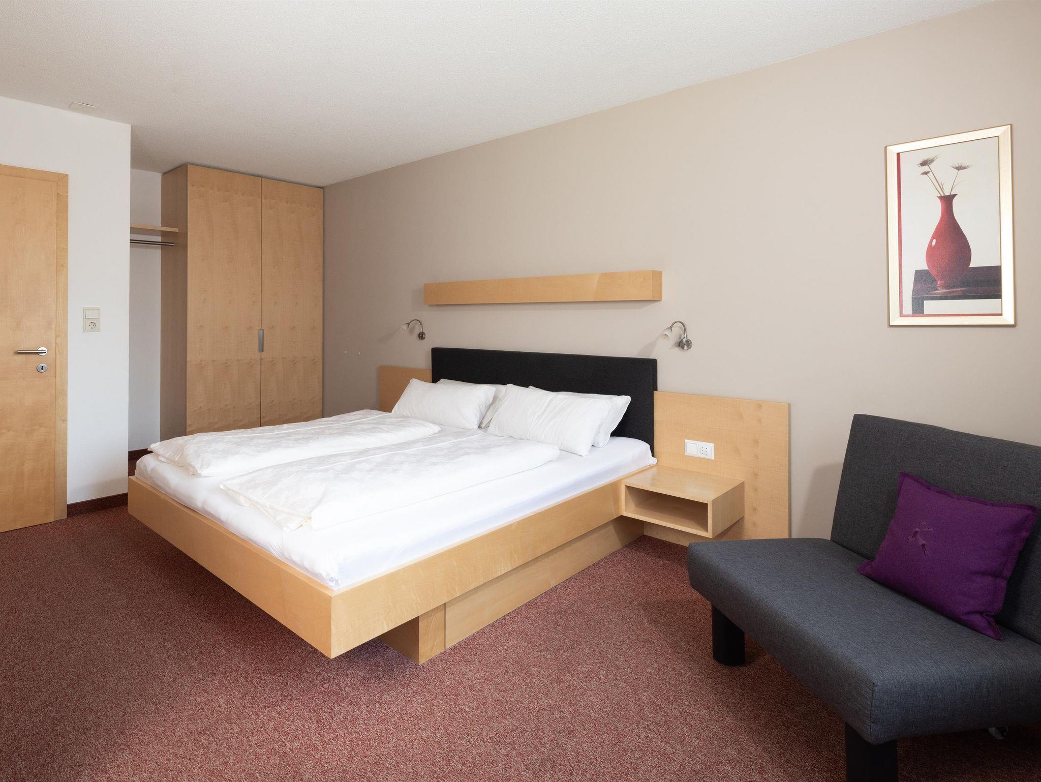 Dieses 22 m² große Zimmer verfügt über ein großes Doppelbett und ein Schlafsofa, wodurch es auch als Mehrbettzimmer genutzt werden kann. Es ist mit Holzparkett ausgestattet und bietet ein Bad mit Dusche/WC, einen Flachbild-TV, einen Safe und eine Mini-Bar. Vom großen Süd-Balkon aus genießen Sie einen schönen Blick auf die Kanisfluh.