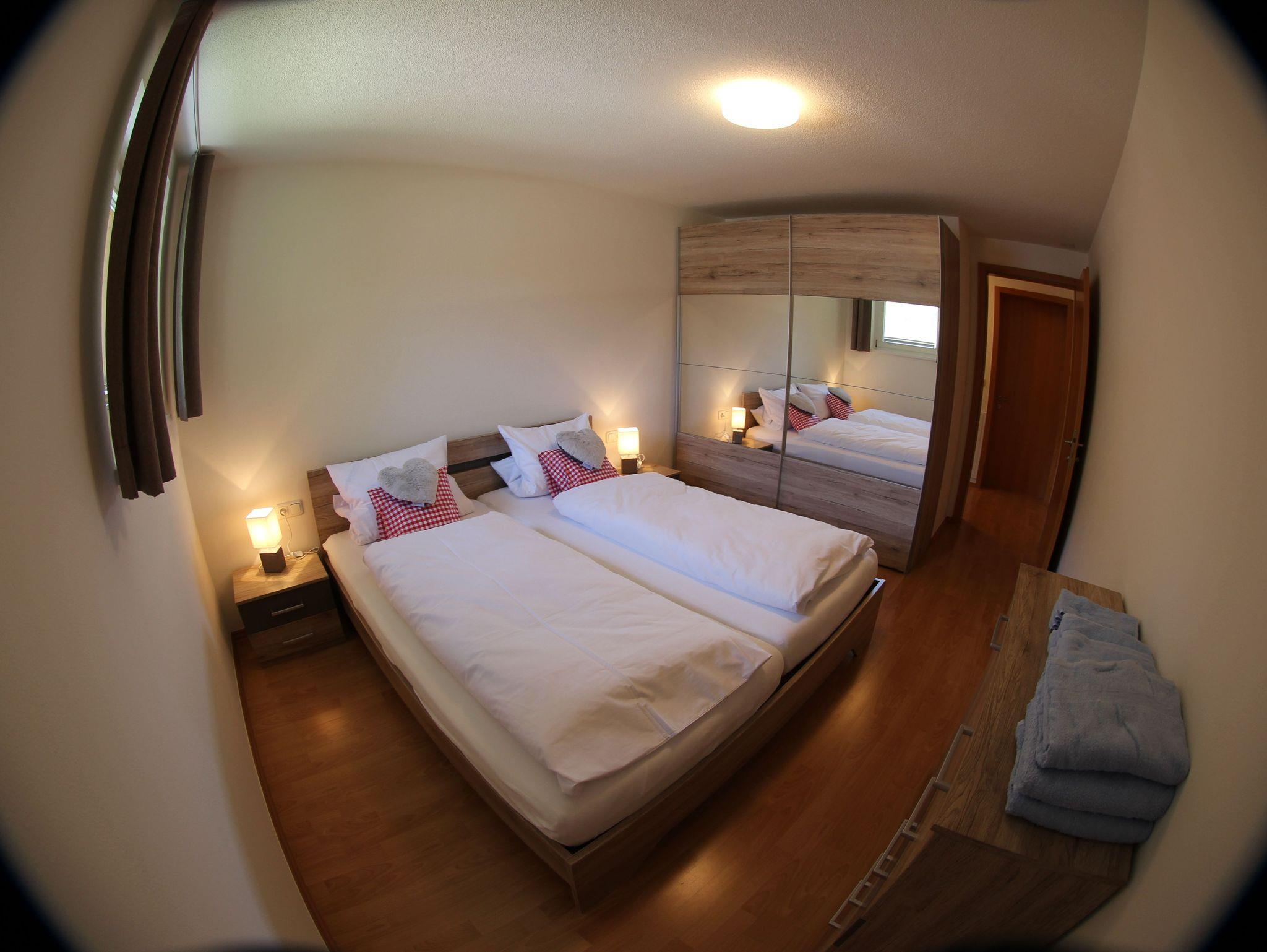 Die Ferienwohnung im 1. OG ist mit ihren ca. 54 m² ein herrliches Urlaubs-Zuhause für zwei bis 4 Personen. Ausgestattet ist das Appartement mit einem Schlafzimmer, einem Badezimmer, einem seperaten WC, einem Wohnzimmer mit heimeliger Eckbank und einer voll ausgestatteten Küche inkl. Geschirrspüler. Das Sofa (Ausziehcouch 160x200cm) kann auch als zusätzlicher Schlafplatz genützt werden und der Sessel (80x200cm) kann auch noch zu einer zusätzlichen Schlafstätte ausgezogen werden. Ein 40 Zoll Samsung Smart TV und ein Bluerayplayer sind vorhanden. Bei Sonnenschein nützen Sie den ca. 16 m² grossen Balkon auf der nach Süden ausgerichteten Wohnung.