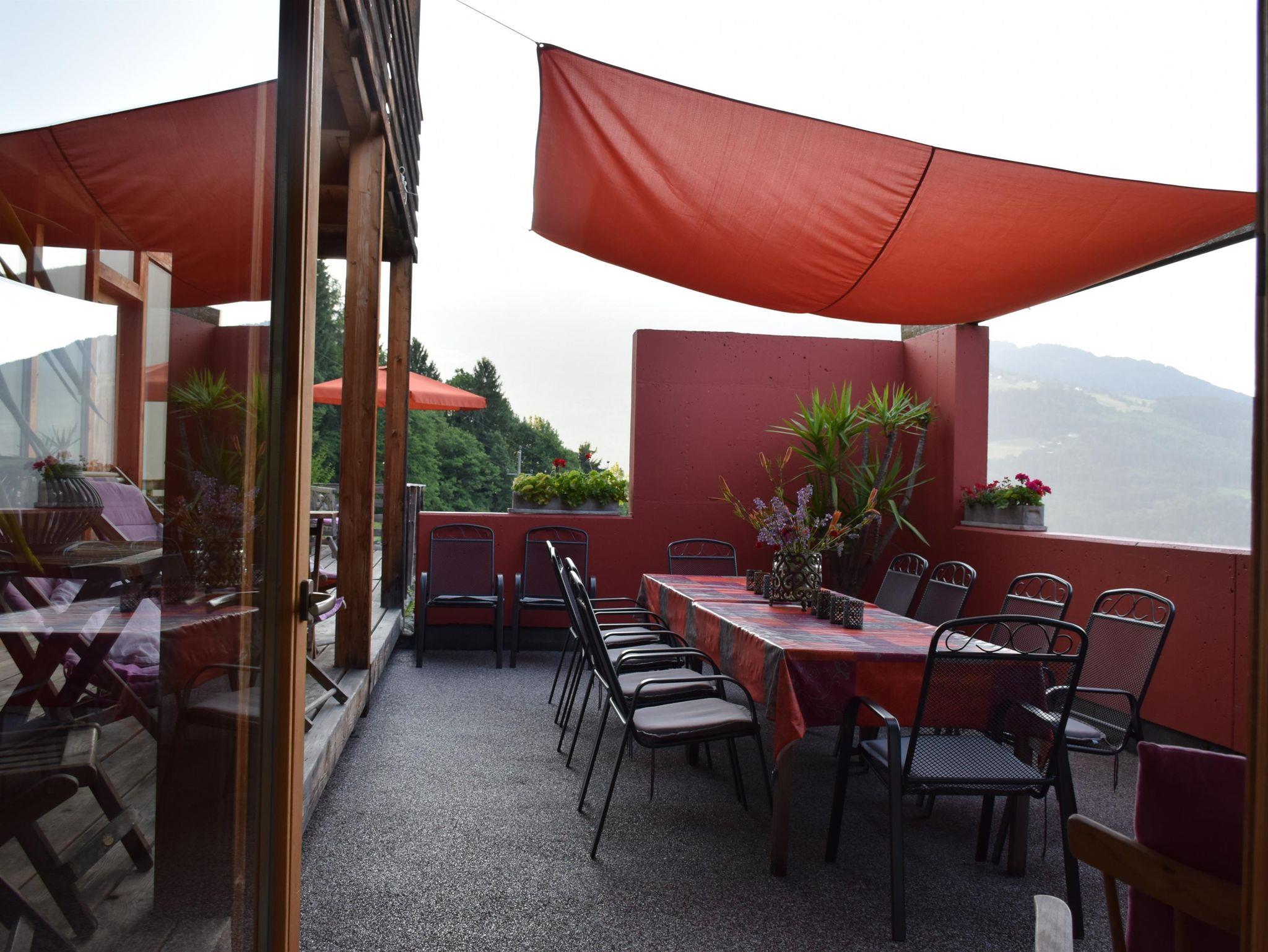 Davor können Sie vom Balkon das Panorama in einzigartiger Ruhe genießen. In den Liegestühlen hat man eine schöne Aussicht auf die umgebende Bergwelt und ins Tal nach Döbriach.