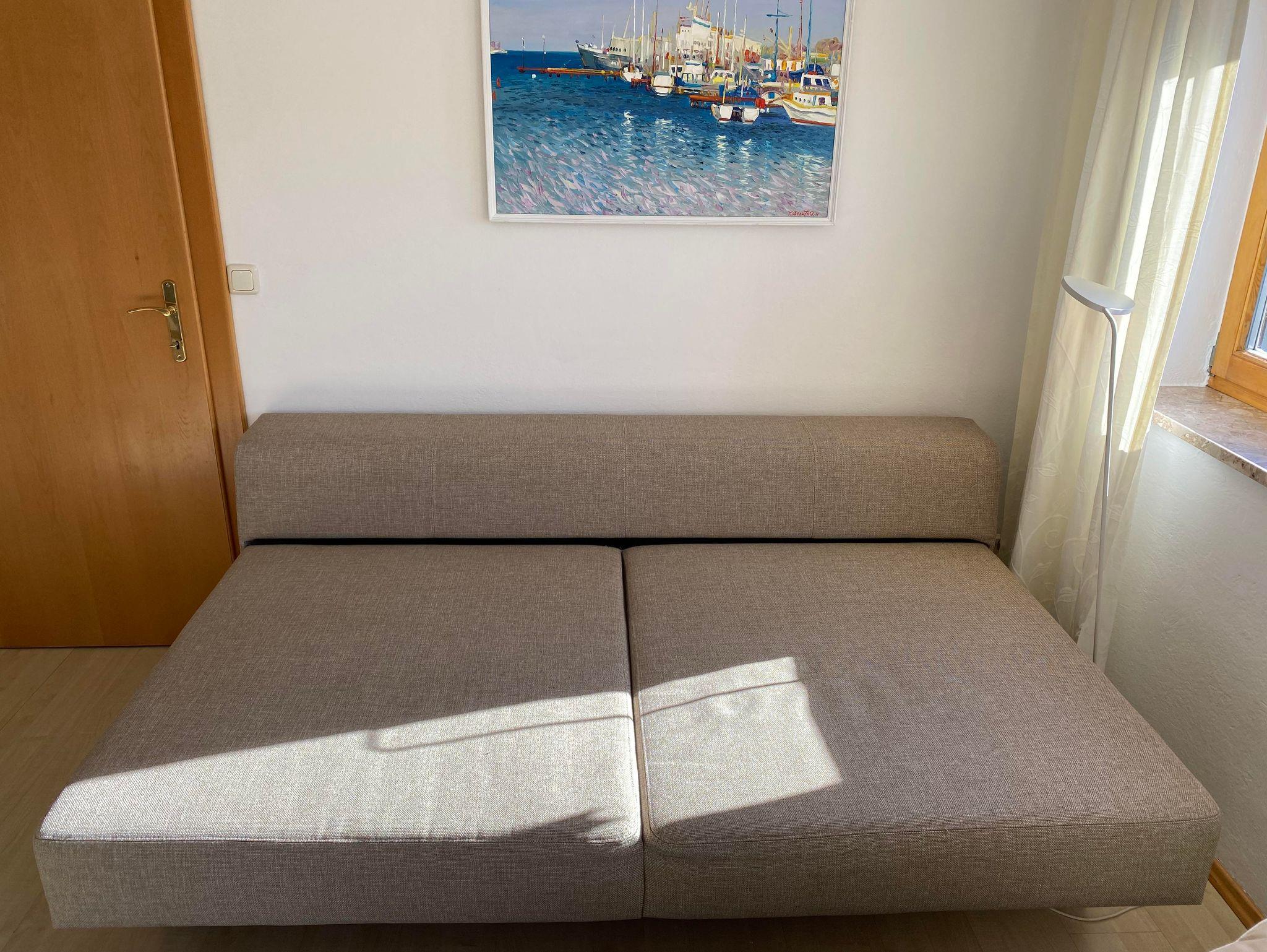 • Wohnzimmer mit neuem 4-Sitzer Sofa, bei Bedarf als Schlafsofa nutzbar