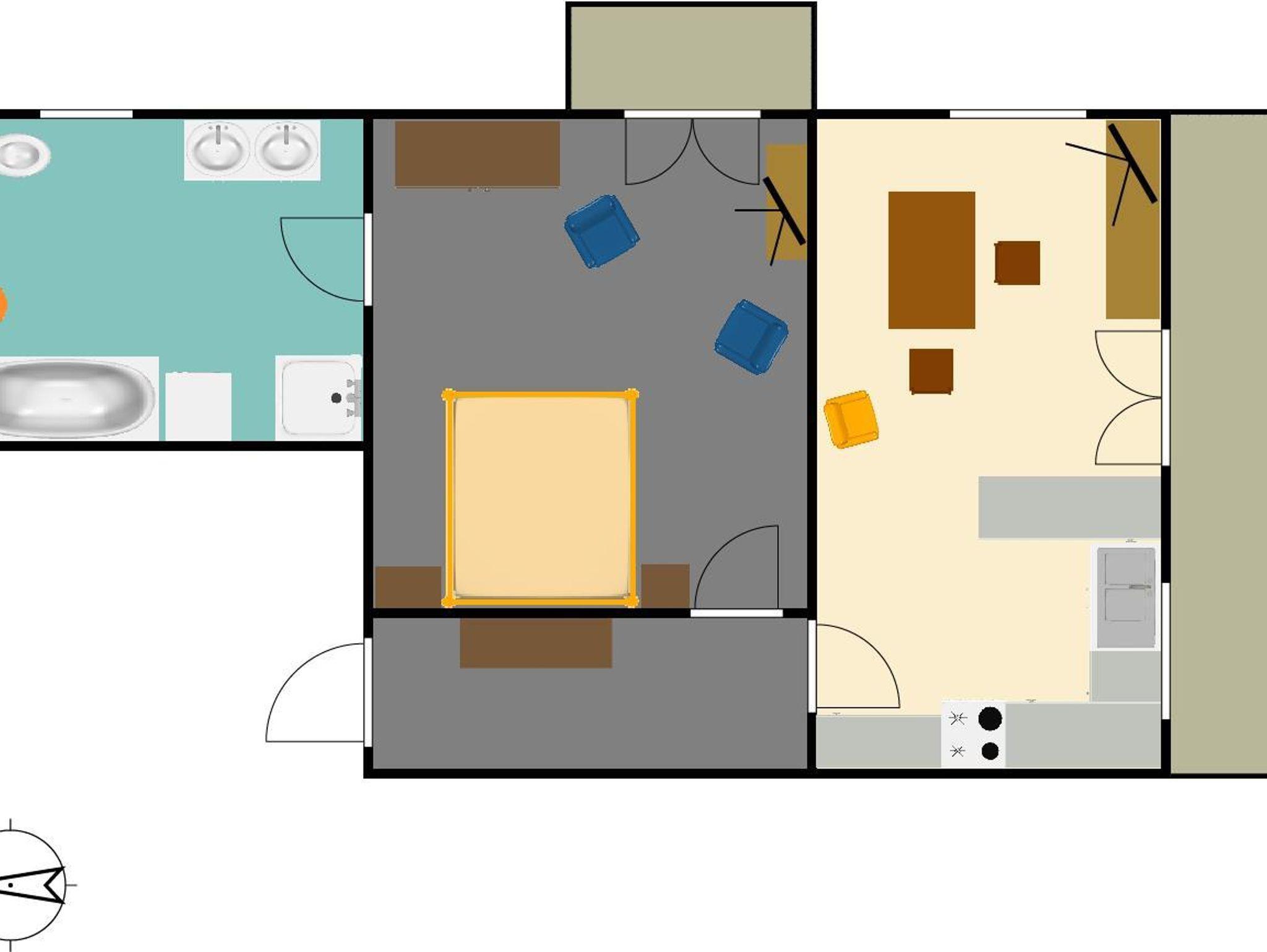 Die Wohnung hat ca. 53 m² und vefügt über eine Wohnküche mit 4 Herdplatten, Backrohr, Wasserkocher, Geschirrspüler, Kaffeemaschine und Toaster, ein Schlafzimmer mit Doppelbett und ein großes Badezimmer mit Badewanne, Dusche/WC, 2 Waschbecken und einer Waschmachine.