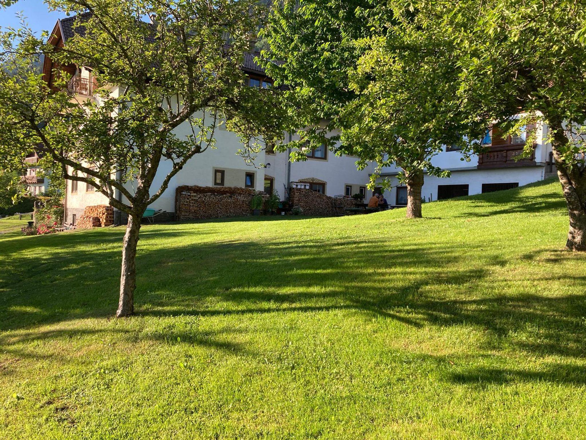 Rund um das Haus erstreckt sich ein großer Obstgarten mit Tischtennis, einigen Sitzplätzen und Sonnenliegen.