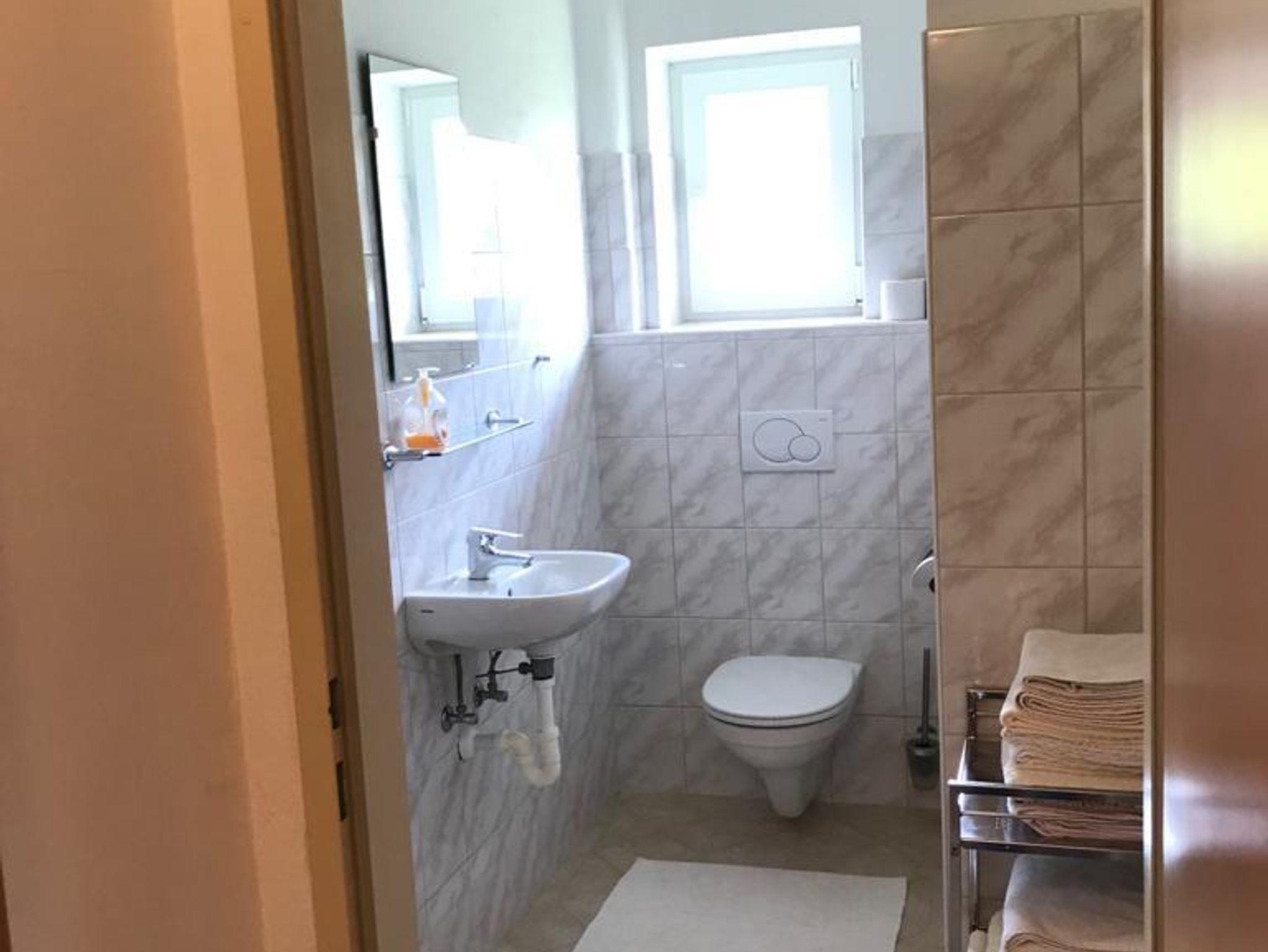 Unsere Ferienwohnung Garconniere im 1. Stock hat eine Wohnfläche von ca. 40 m2 mit sehr praktischer Raumaufteilung! Vom Vorraum gelangt man einerseits in ein separates WC mit Waschtisch und andererseits in die voll ausgestattete Wohnküche mit ausziehbarem Schlafsofa! (optimal geeignet für 1 Kind / 1 Jugendliche(n))! Nebenan gibt es ein abgeschlossenes Schlafzimmer mit Doppelbett, sowie gleich daneben ein Duschbad mit Waschtisch!