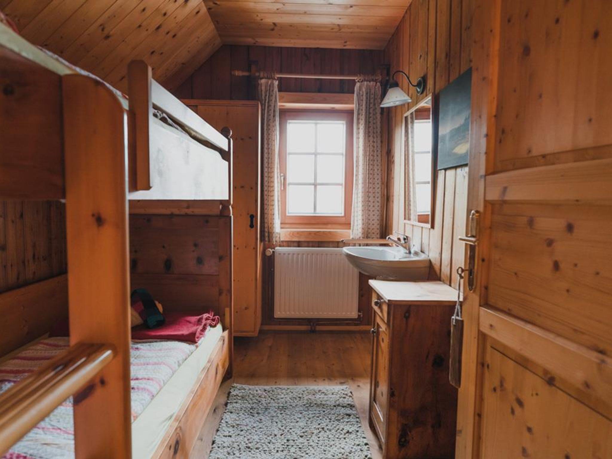 Das 5-Bettzimmer verfügt zusätzlich über zwei gemütliche Lesesessel, einen praktischen Waschbecken sowie einen kleinen Kleiderschrank. Eine Dusche und ein WC liegen im selben Stockwerk.
