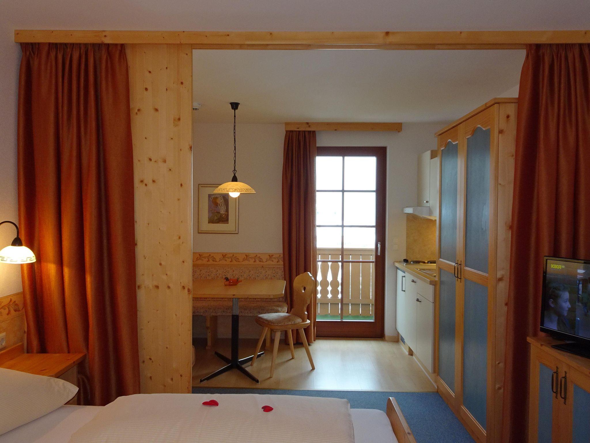 Familienapartment für 2-4 Personen. Elternschlafzimmer und separates Kinderzimmer mit Etagenbetten. Kombinierter Ess-/Wohnraum mit Küche. DU/WC, SAT-TV, möblierter Balkon. Sie genießen eine herrliche Aussicht auf das malerische Ortsbild, den See und die Berglandschaft Oberkärntens. Ausstattung Küche: Kochplatten mit Dunstabzugshaube, Kühlschrank, Mini-Backofen, Wasserkocher. Geschirr vorhanden. Lage: Im 1. + 2. Obergeschoss, Richtung Süd/Ost. Zentralheizung. Haustiere auf Anfrage möglich. Zustellbett für eine fünfte Person auf Anfrage. Gegen Aufpreis auch mit Frühstück oder Halbpension buchbar. HINWEIS: Nicht immer stehen alle freien Kontingente online buchbar zur Verfügung. Fragen Sie bei Bedarf bitte an, wir helfen Ihnen gerne weiter.