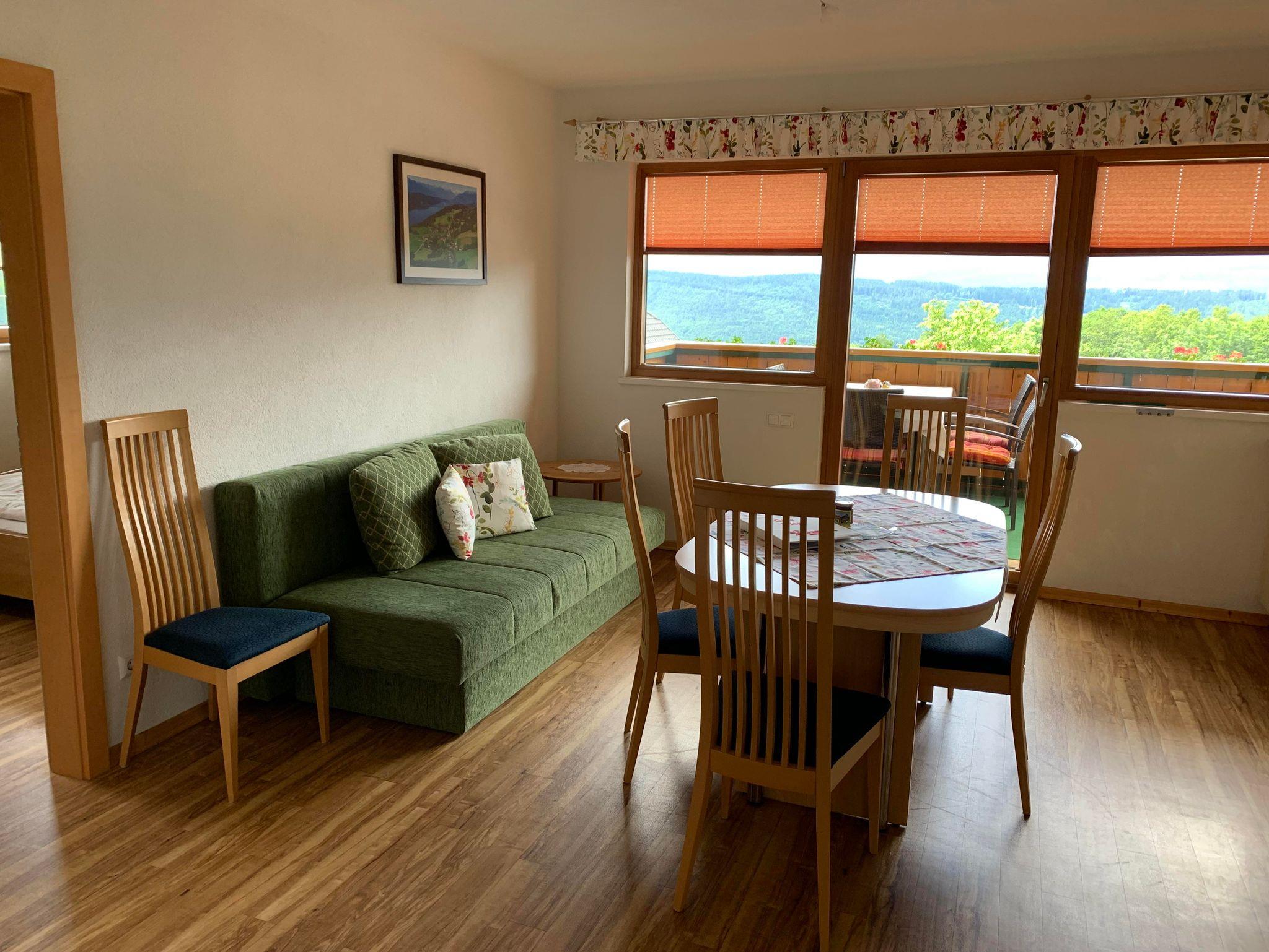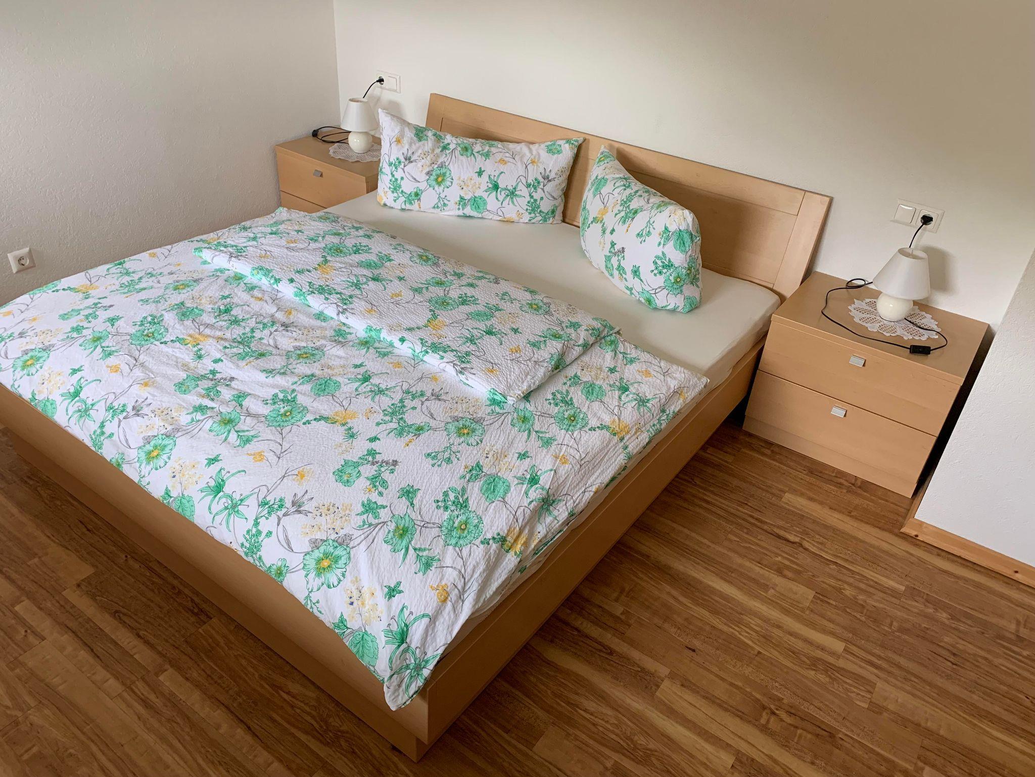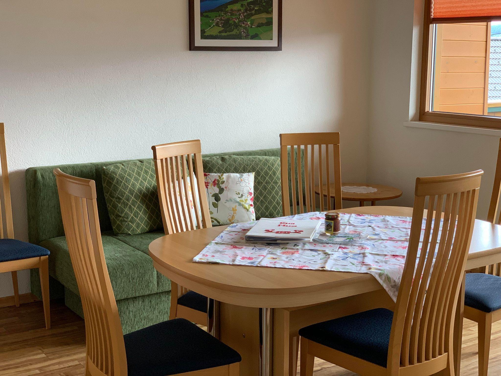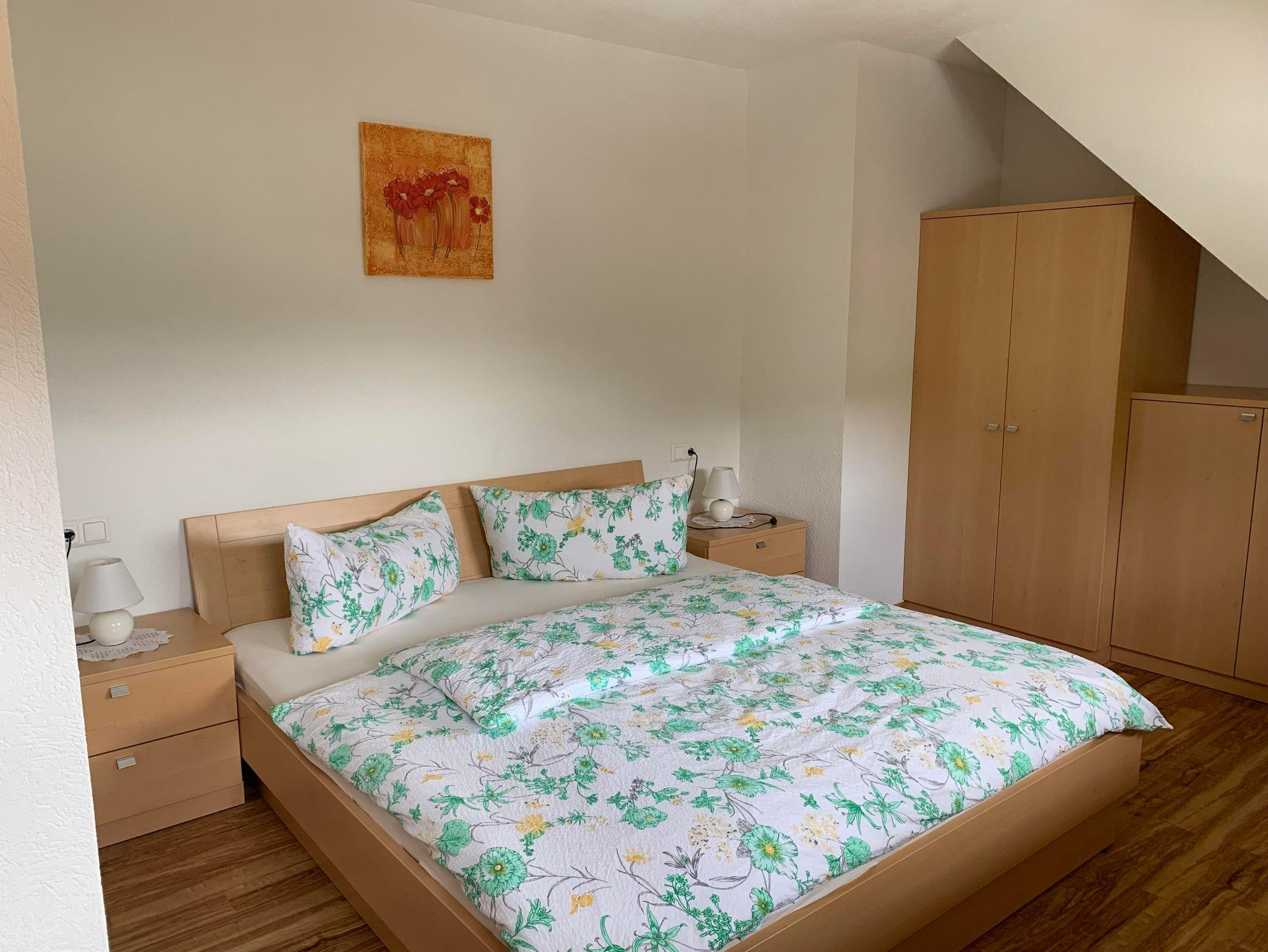 Die gemütliche Ferienwohnung Seeblick befindet sich im 2. Stock des Bauernhauses und bietet Platz für 2-5 Personen. Die Wohnung ist aufgeteilt in zwei getrennte Schlafzimmern. Das erste Doppelzimmer verfügt über ein Doppel- und Einzelbett mit Ostfenster. Das zweite Schlafzimmer ist mit einem Doppelbett ausgestattet und Richtung Westen ausgerichtet.