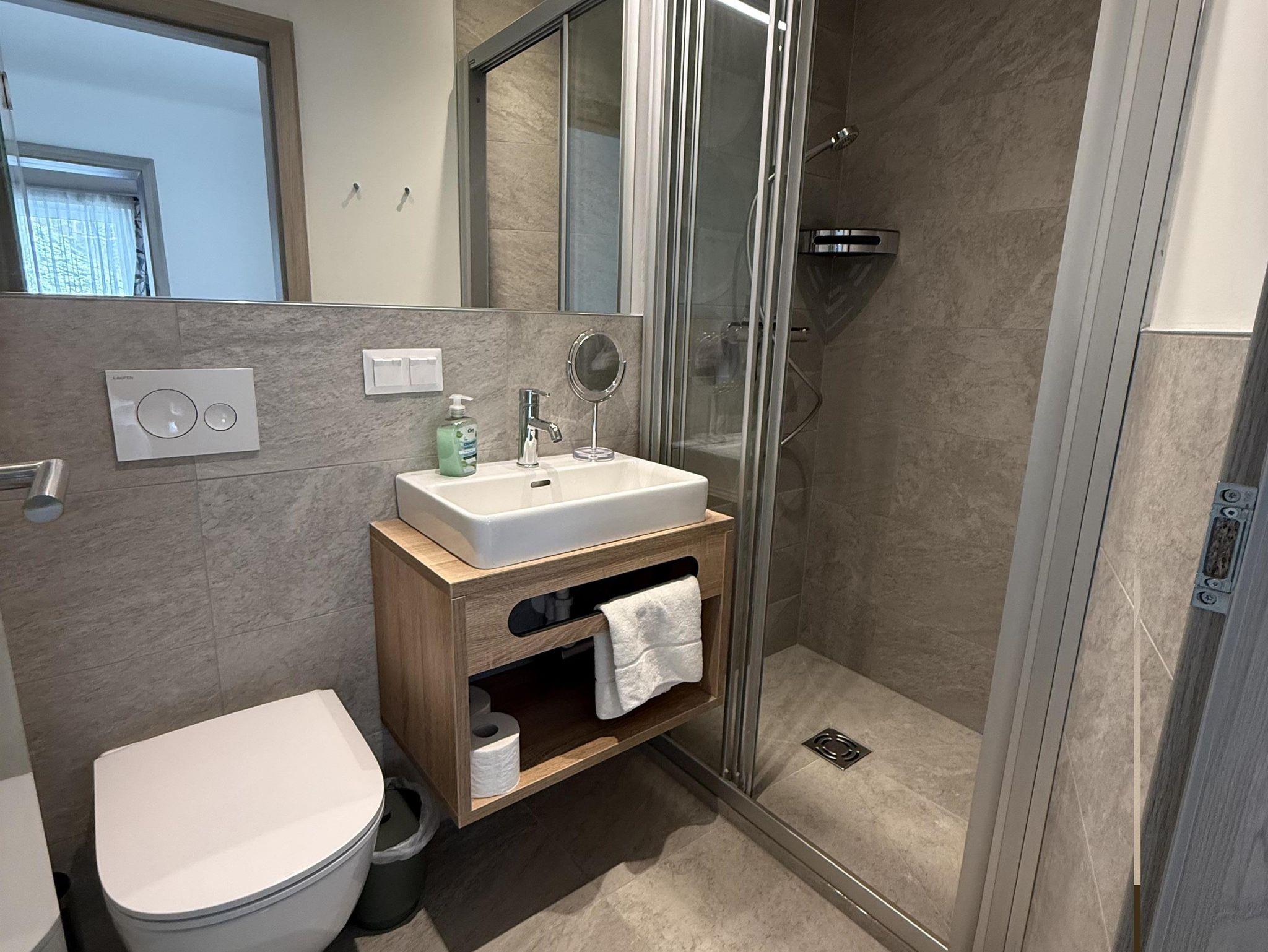 Dusche / WC; Haarfön, Telefon, Radio, SAT-TV, Internetanschluss, teilweise mit Balkon, teilweise mit Kühlschrank und teilweise mit Klimaanlage;