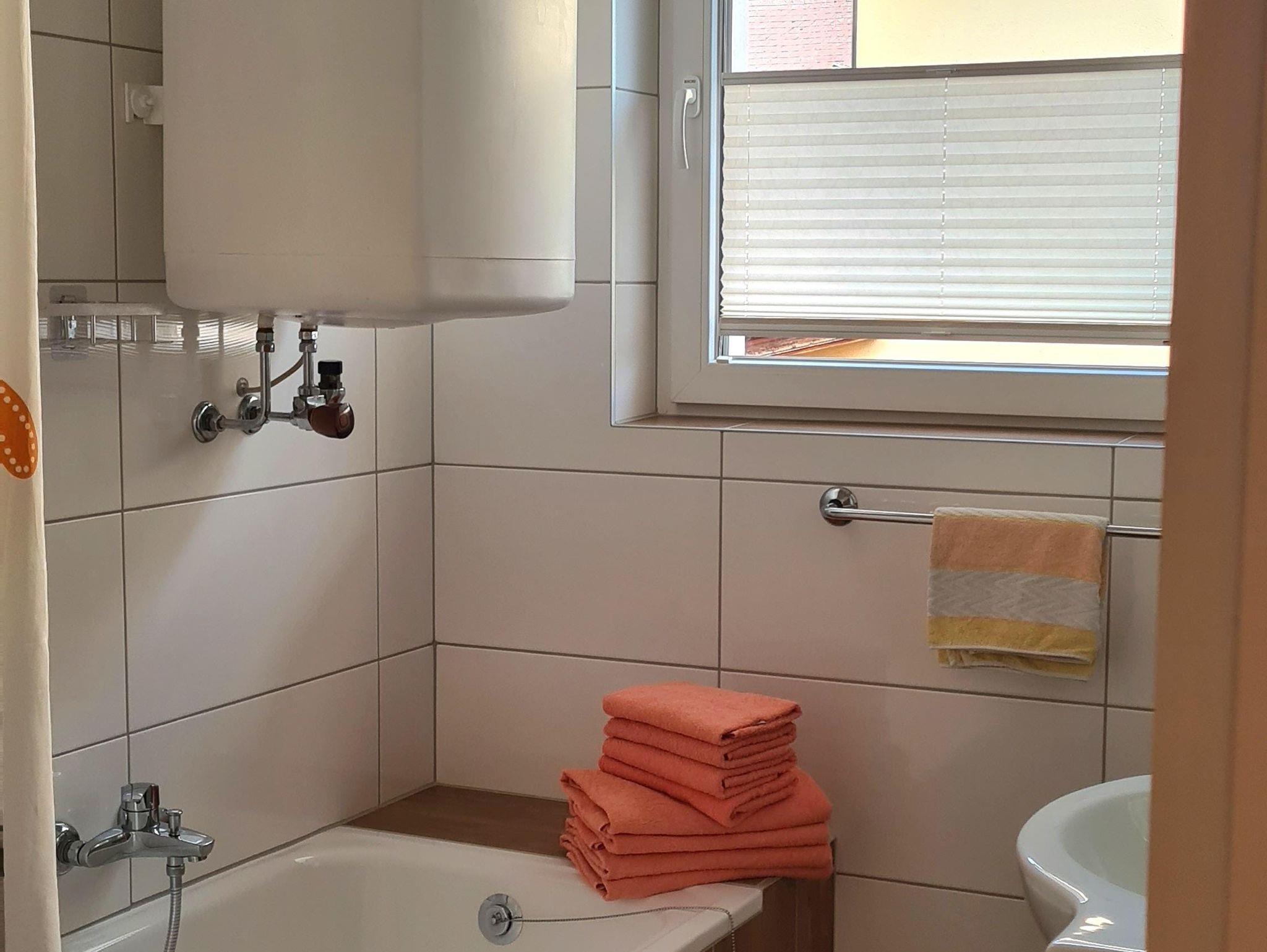 Bettwäsche, Hand- und Badetücher sind vorhanden.