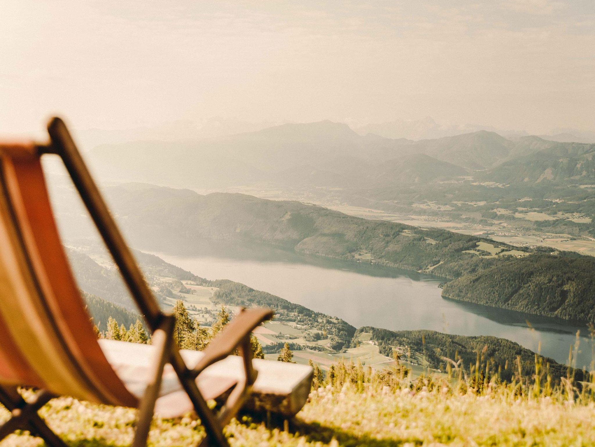 Der Ostbalkon des Zimmers bietet einen seitlichen Blick auf den Millstätter See und eröffnet einen malerischen Ausblick auf die sanften Grasgipfel der Millstätter Alpe. Besonders der Sonnenaufgang lässt sich von hier aus in seiner ganzen Pracht genießen.
