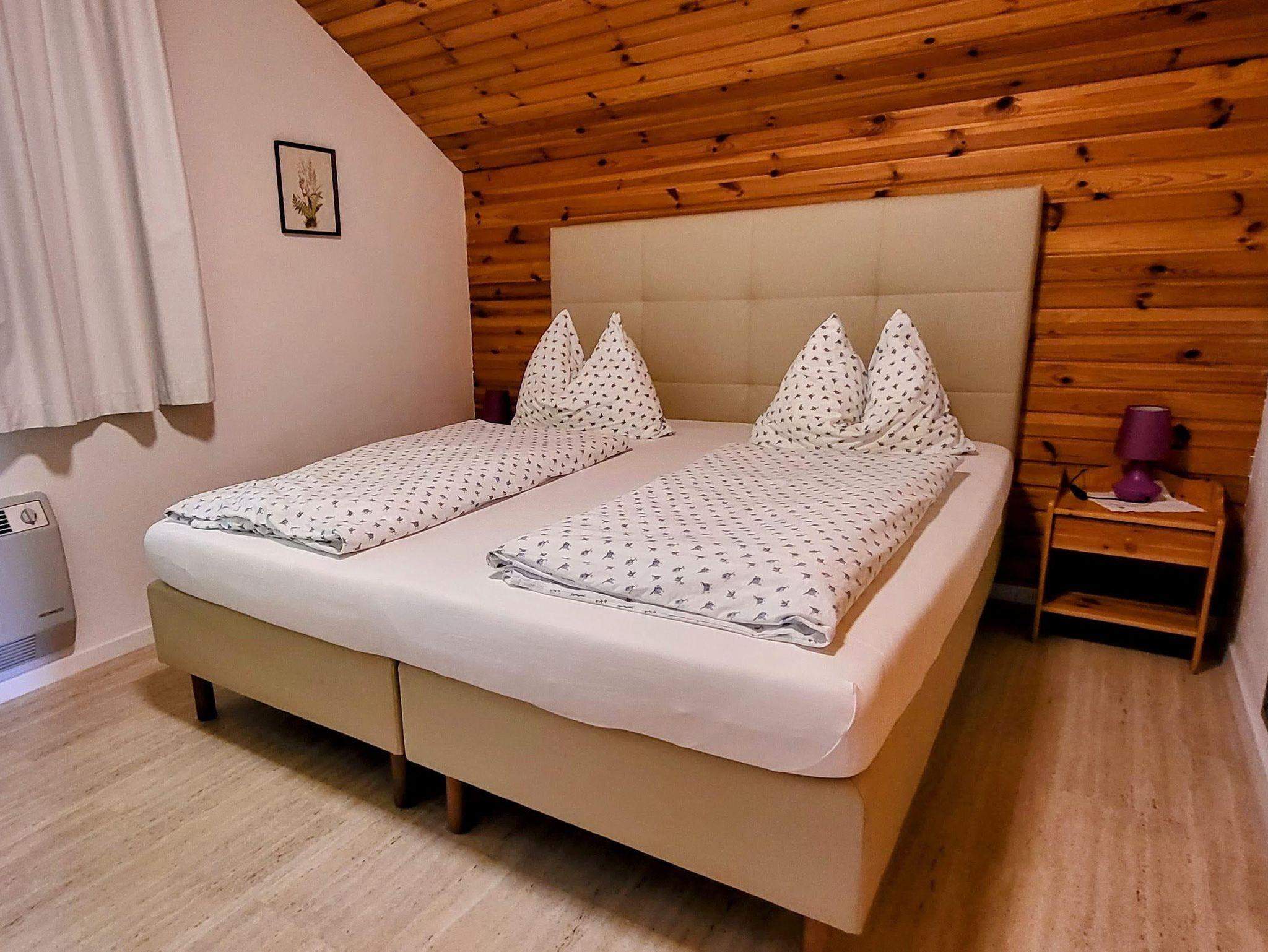Suedseitige Ferienwohnung mit Balkon und Seeblick fuer 2 Personen (Typ III) ca. 60 m² 1 Schlafraum, grosser Wohnraum mit Couch- & Essgarnitur, Kuechenecke mit Mikro und Geschirrspueler, Bad, WC, Foen, Sat-TV, gratis WLAN