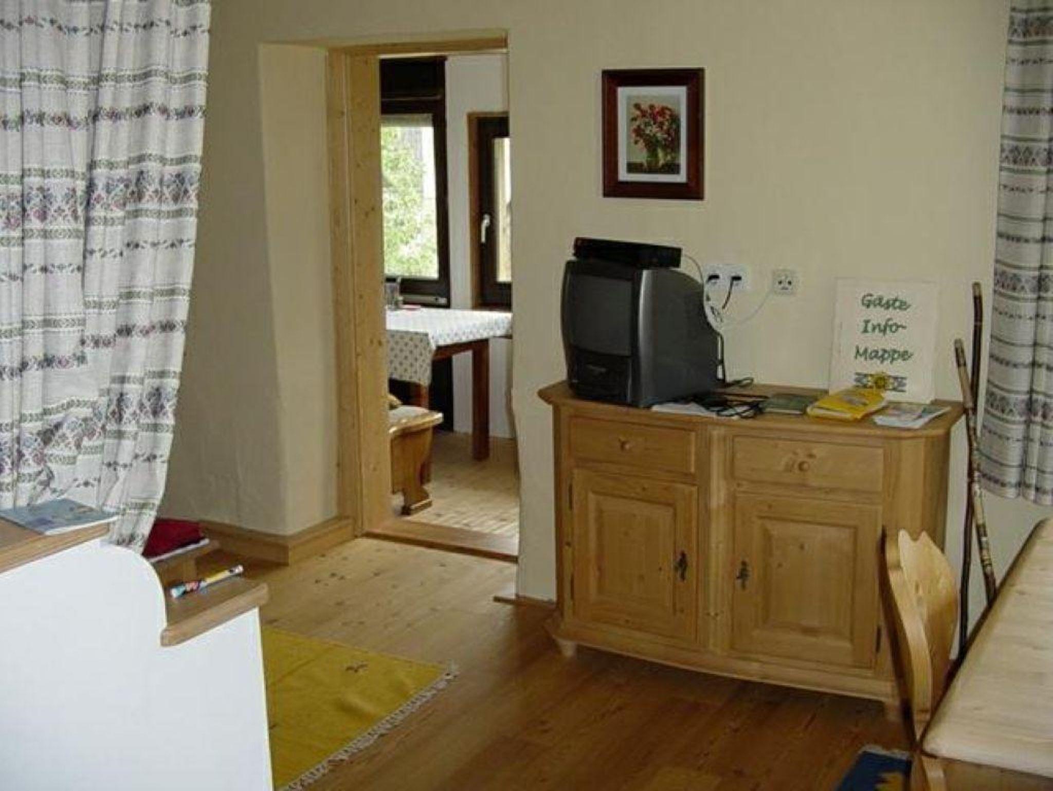 ca 75qm, im 1.Stock des Bauernhauses, 2 Schlafzimmer, 2 Bäder mit Dusche/WC, komplette Küchenzeile(E-Herd, Ofen, Kühlschrank mit Eisfach, Geschirrspüler, Kaffeemaschine, Wasserkocher...)grenzt an das geräumige Wohn-Eßzimmer, Eßecke mit Platz für eine große Familie, Fernsehecke mit Schlafcouch und Sat-TV von dort gelangen Sie auf den möblierten Balkon mit Blick auf den Garten und die Berge