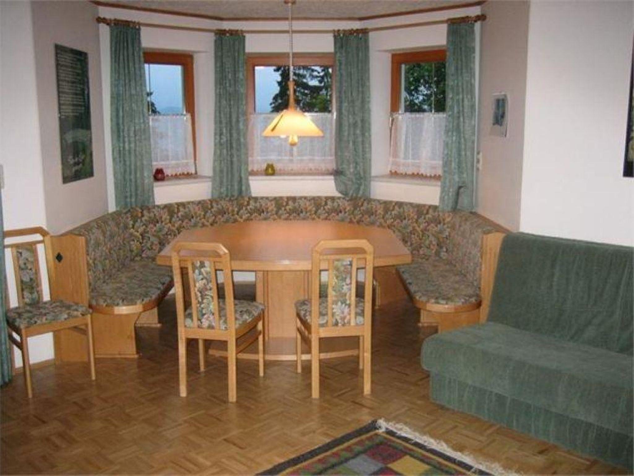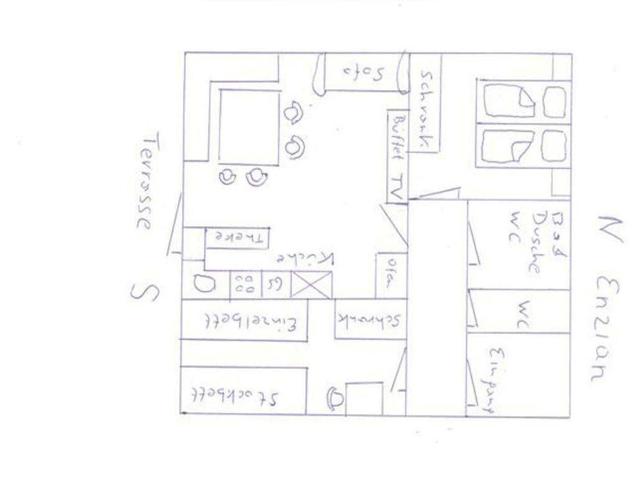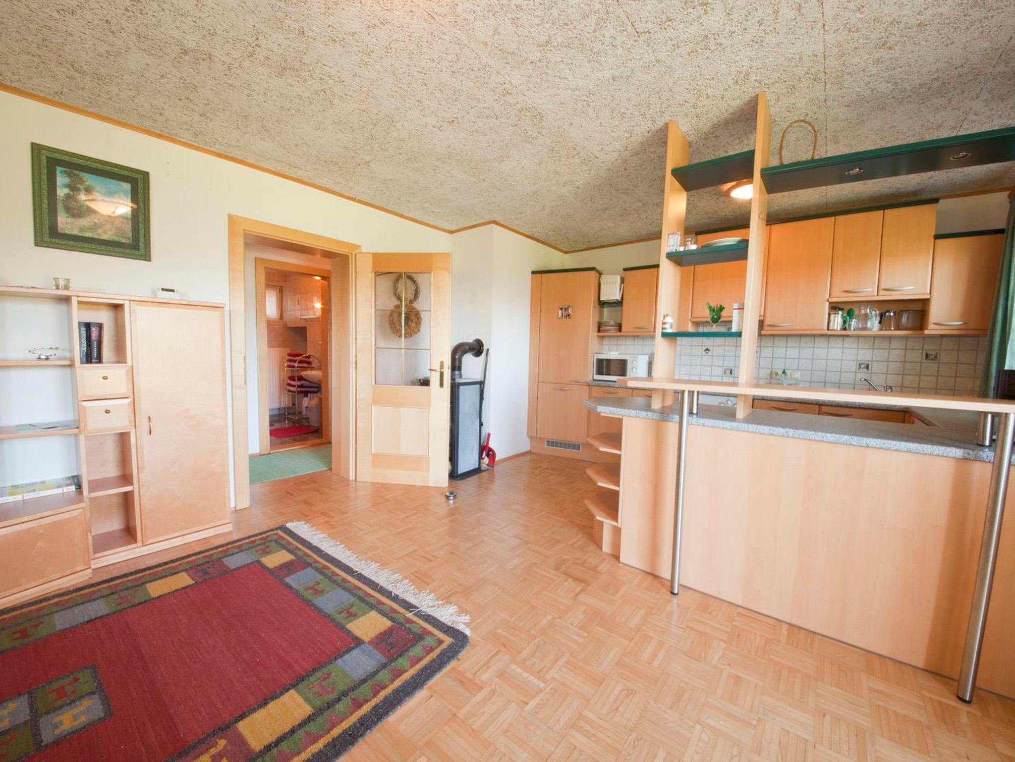 Ca80qm groß,2 separate Schlafzimmer, wobei das Kinderzimmer ein Stockbett und ein frei stehendes Bett hat,ein Bad mit Dusche/WC/Badewanne/Waschmaschine und weiteres WC, großzügig gestaltete offene Küche mit allem Komfort (E-Herd,Backofen, großer Kühlschrank mit Eisfach, Geschirrspüler, Mikrowelle, Wasserkocher, Kaffeemaschine, Dunstabzug...) grenzt an ein geräumiges Wohn-Eßzimmer mit Schwedenofen, Sat-TV, goße, im Erker liegende, Eßecke, mit Platz für eine Großfamilie, Terasse mit Traumrundblick
