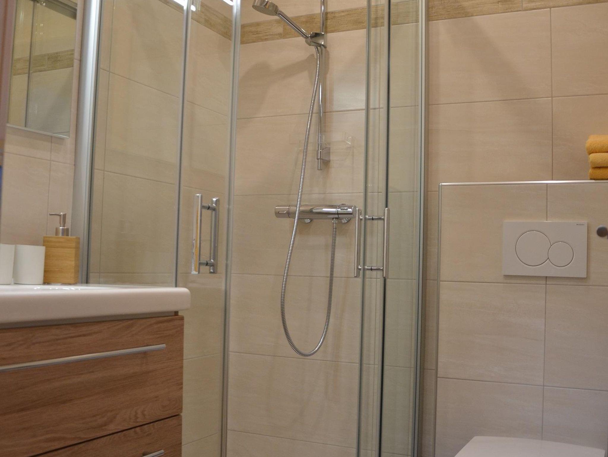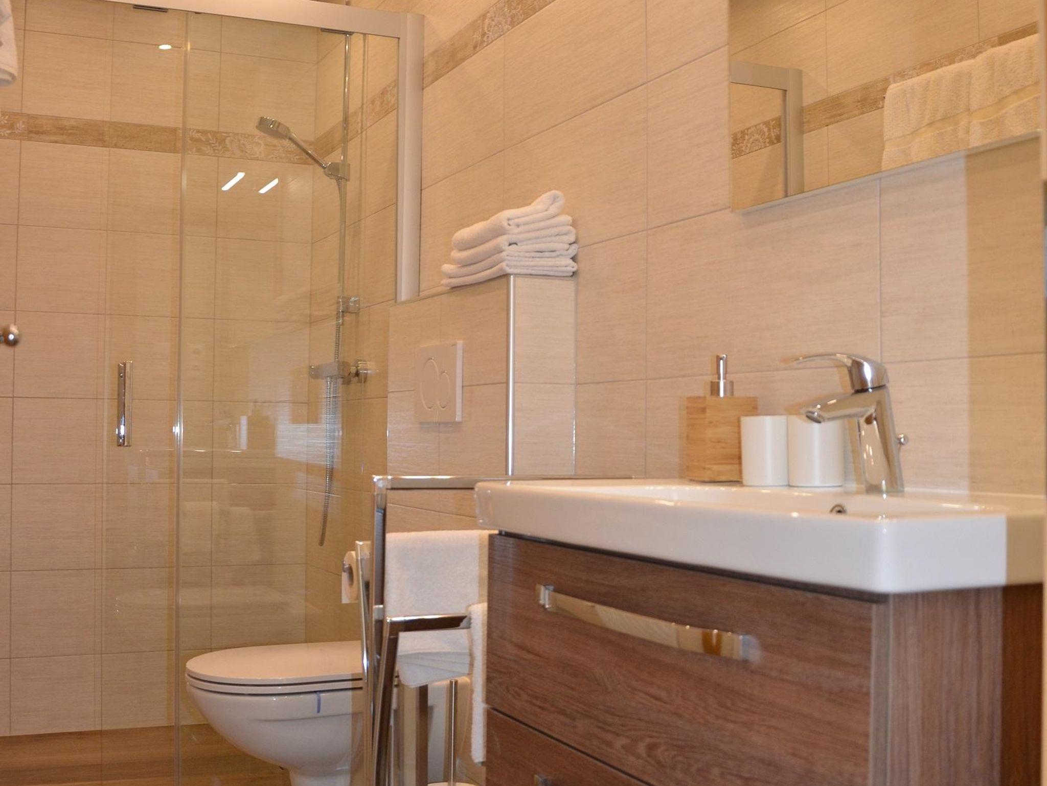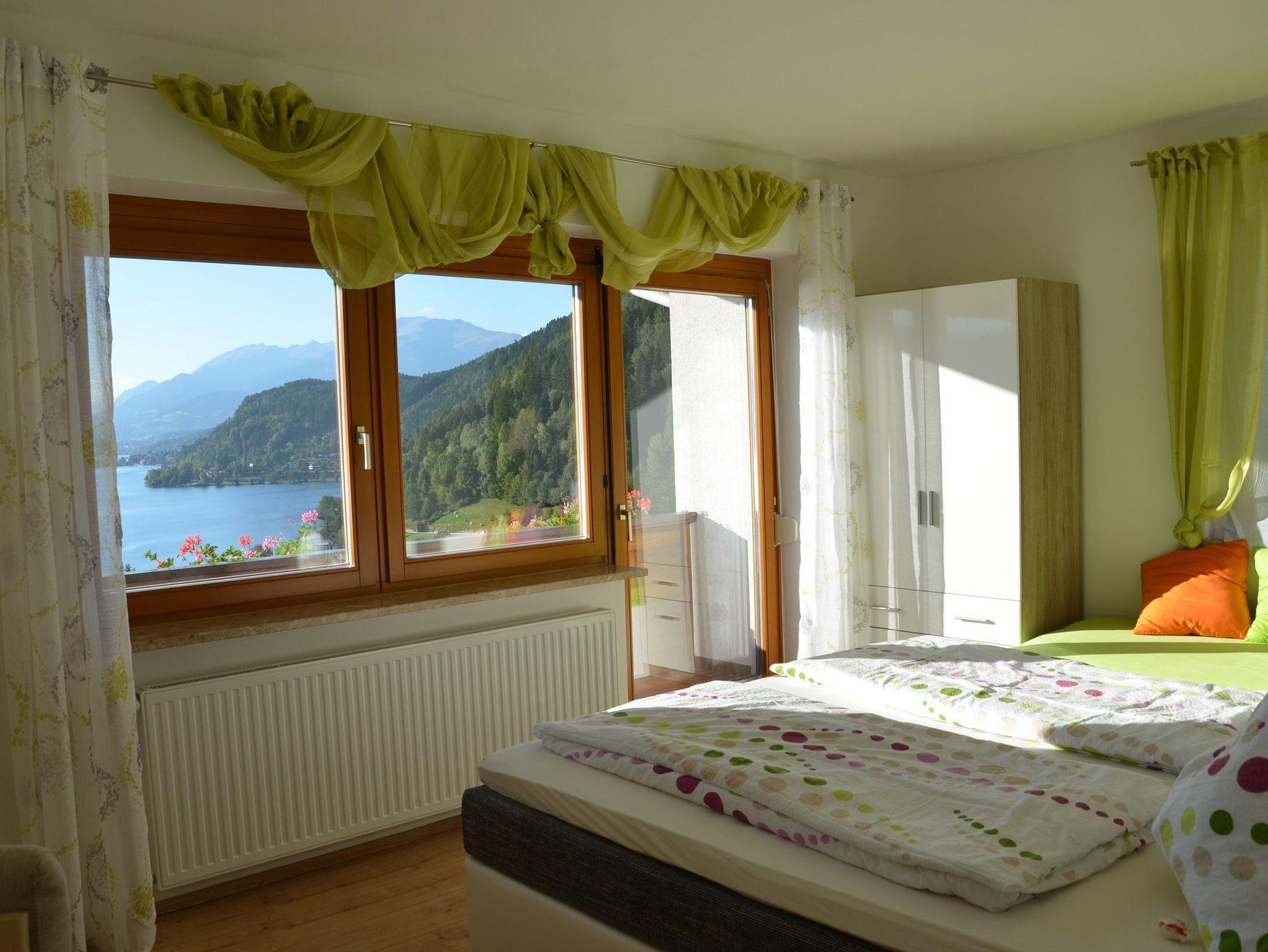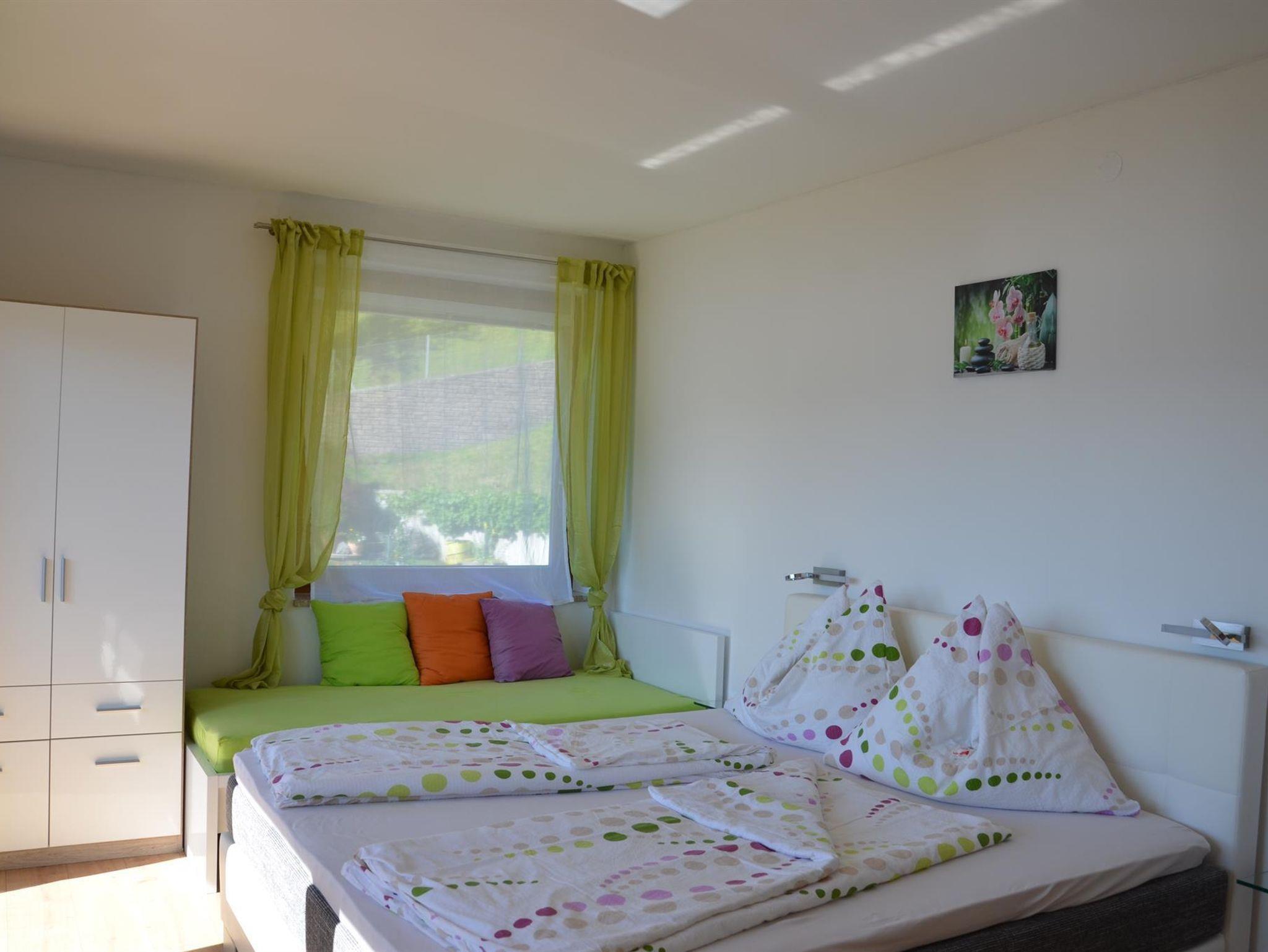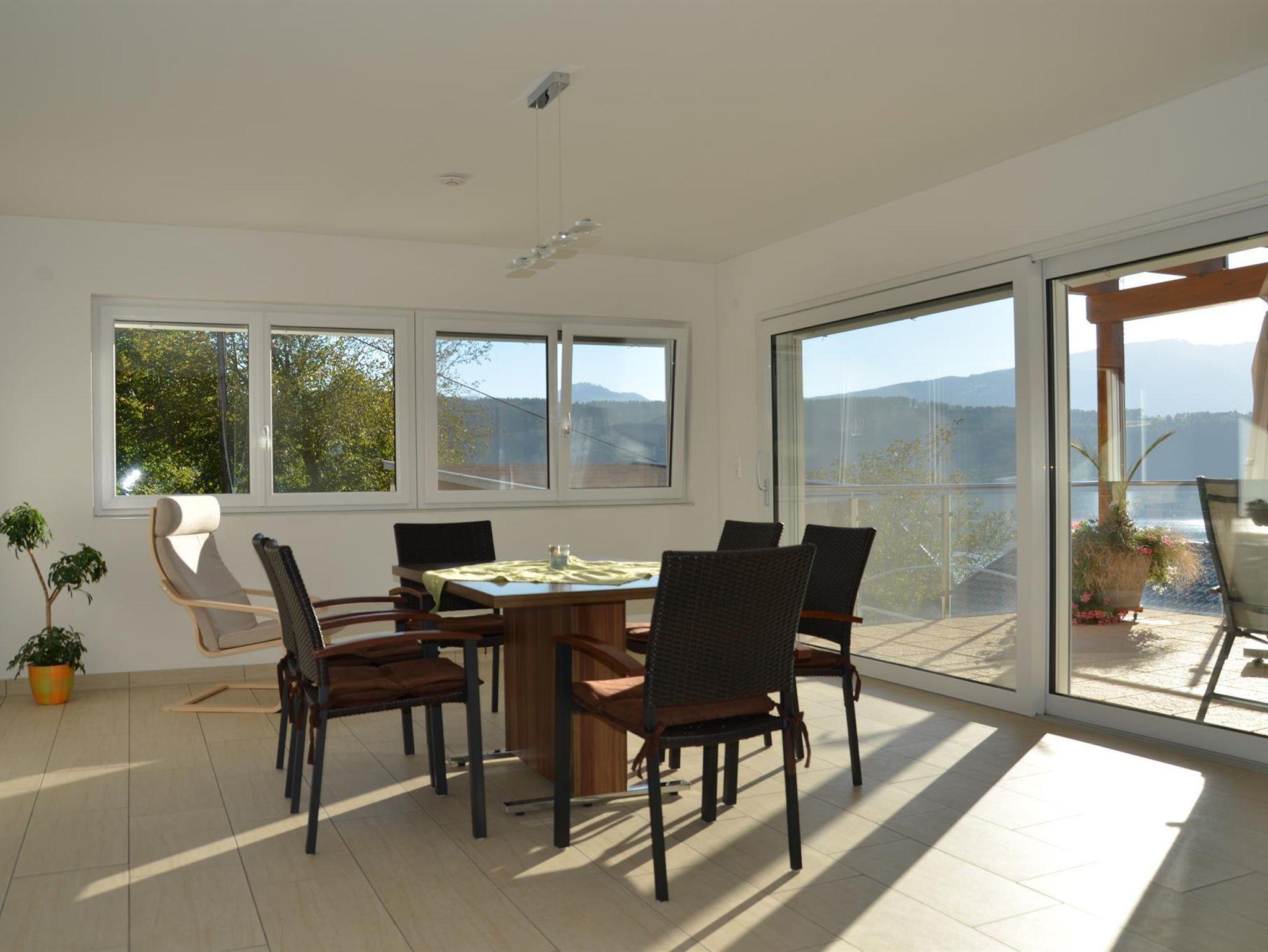 Unsere ca. 110m² Terrassenwohnung liegt im Hochparterre mit einem faszinierenden, freien Blick über den See und die Berge. Sie besteht aus einem Doppel- und einem Dreibettzimmer mit jeweils Dusche und WC, einem Wohnzimmer mit Südbalkon, einer Wohnkühe, Wintergarten mit Ostterrasse.