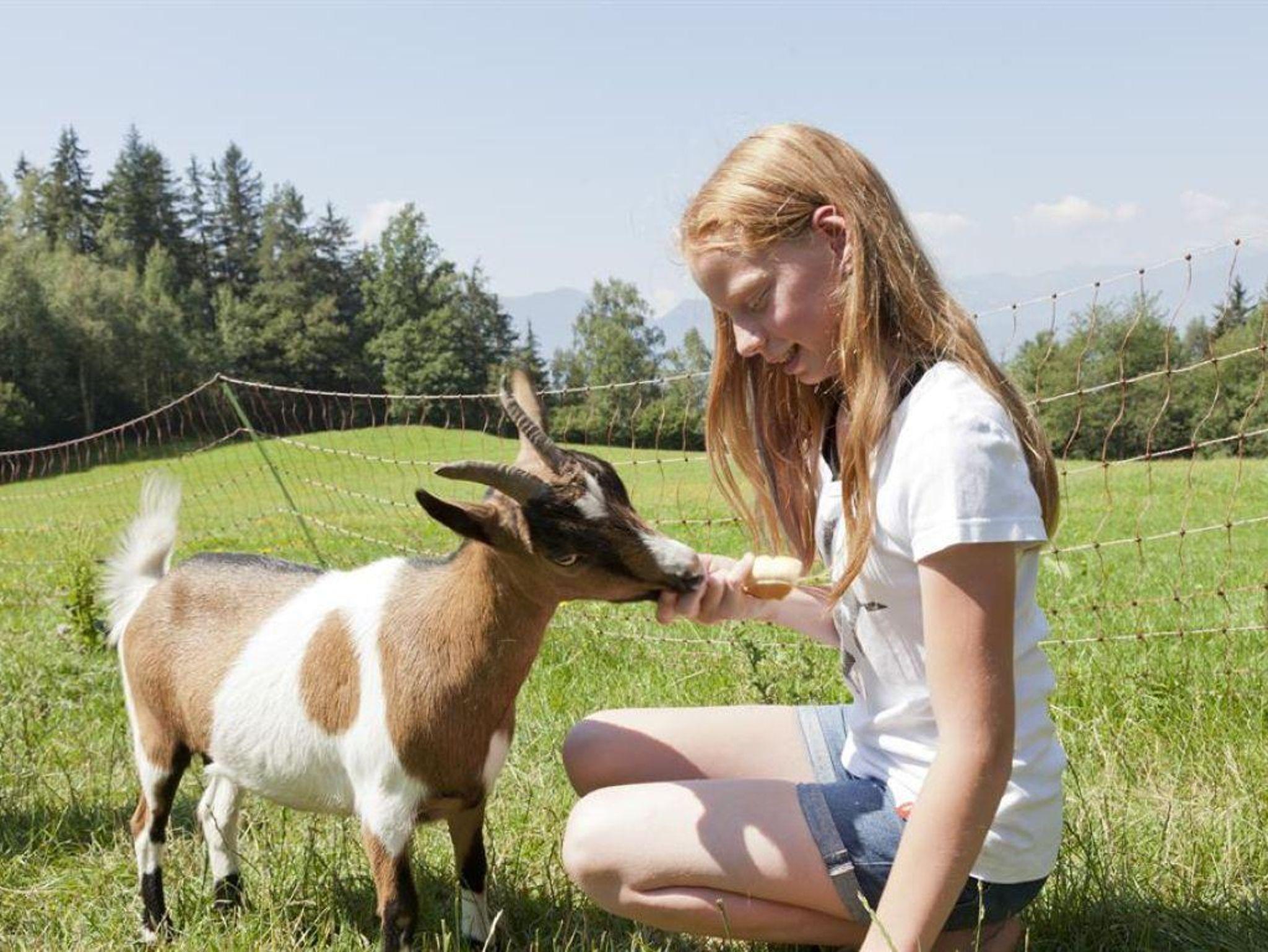 Auf die Kinder warten schon unsere Tiere die sich gerne umsorgen und verwöhnen lassen (Hunde, Katzen, Kühe, Kälber, Ziege, Meerschweinchen,Hühner).