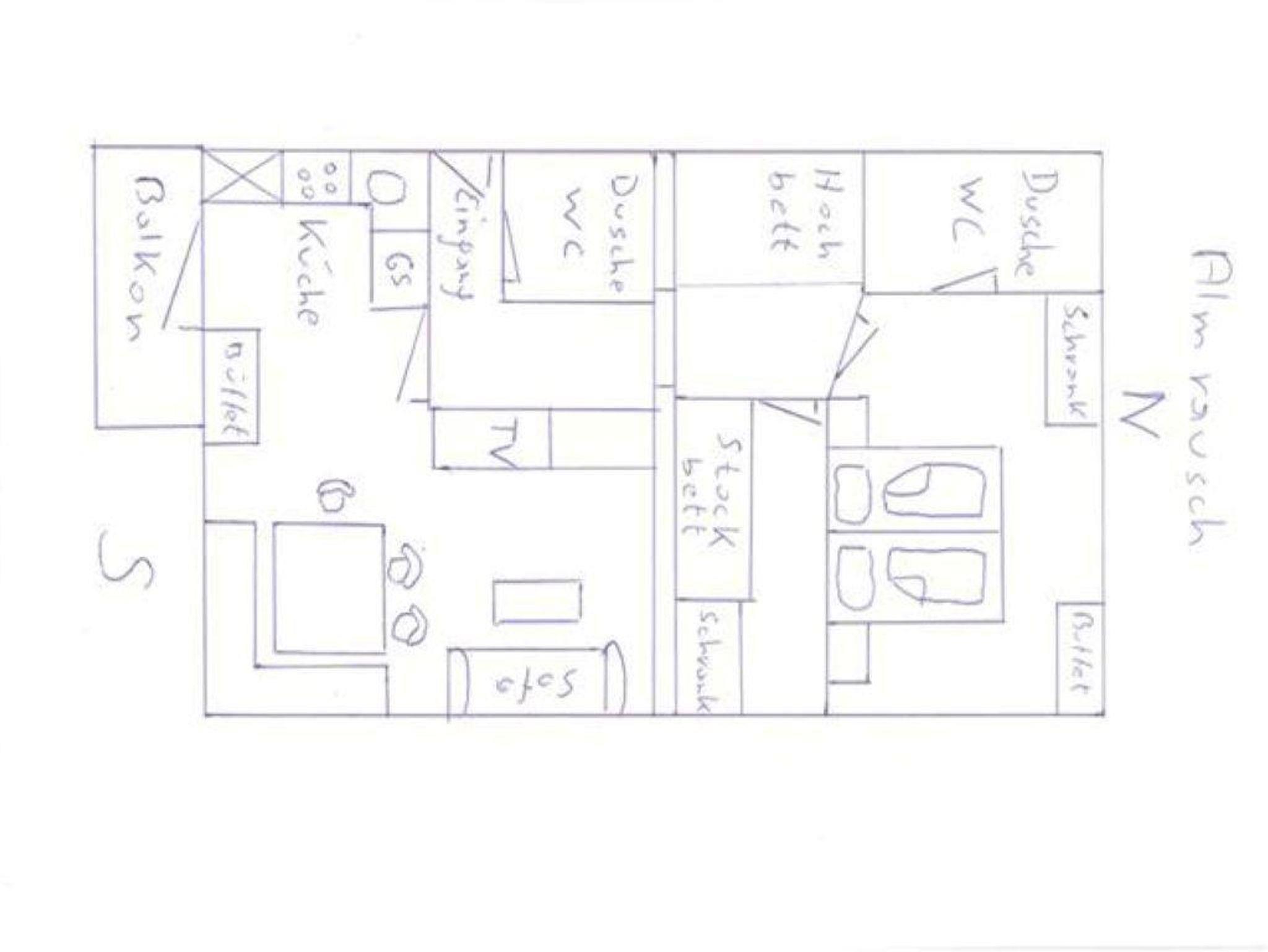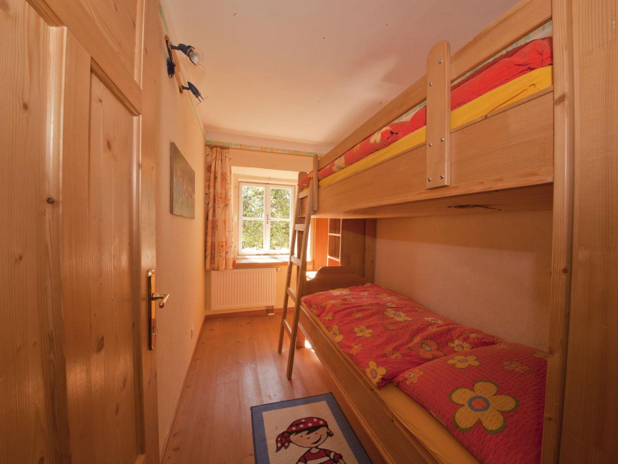 ca 75qm groß, im 1.Stock des Bauernhauses, 2 Schlafzimmer, das Kinderzimmer hat ein Stockbett, im Vorraum zu den Schlafzimmern ist in einer Nische noch ein weiteres Hochbett, 2 Bäder mit Dusche/WC, komplette Küchenzeile (E-Herd, Ofen, Geschirrspüler, Kühlschrank mit Eisfach, Kaffeemaschine, Wasserkocher...) grenzt an das geräumige Wohn-Eßzimmer mit Eßecke für eine große Familie und Fernsehecke mit Sat-TV mit Schlafcouch, von der Küche gelangen Sie auf den möblierten Balkon