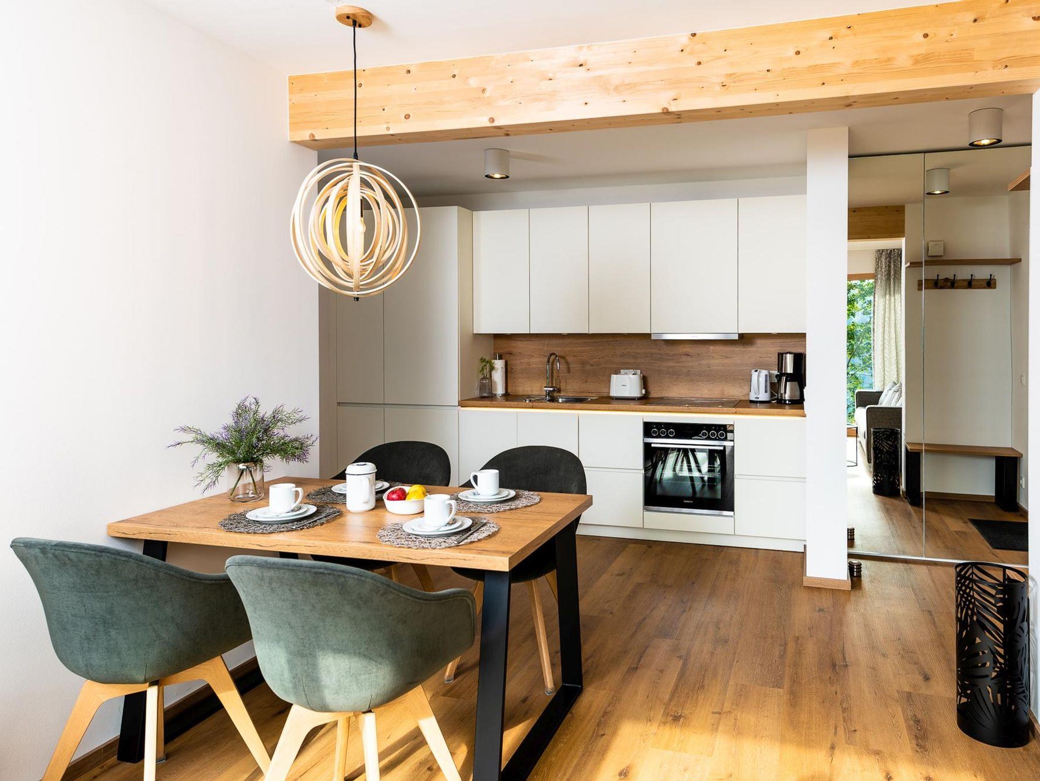 Die 40m² große Wohnung verfügt über ein Doppelzimmer, einem Badezimmer mit Dusche, einem separatem WC, eine voll ausgestattete komplett neue Küche mit Essplatz, Wohnbereich mit TV und einer überdachten Terrasse mit Sitzbereich und Blick auf den Millstätter See.