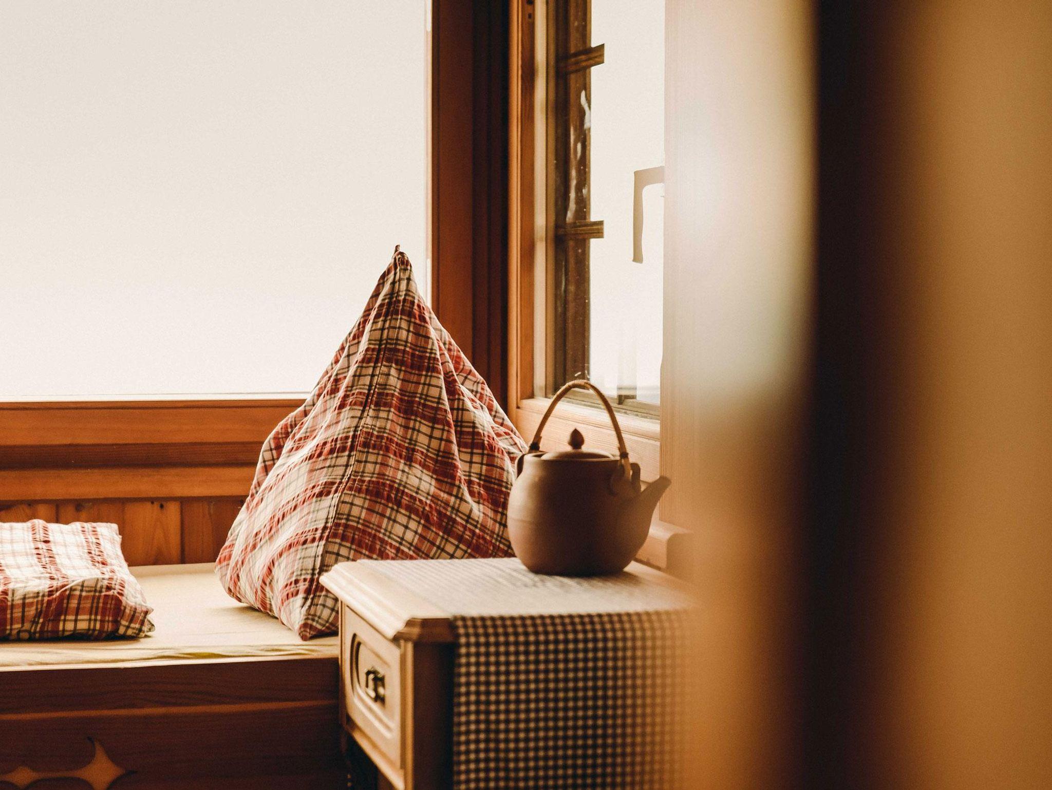 Das 5-Bettzimmer verfügt zusätzlich über zwei gemütliche Lesesessel, einen praktischen Waschbecken sowie einen kleinen Kleiderschrank. Eine Dusche und ein WC liegen im selben Stockwerk.